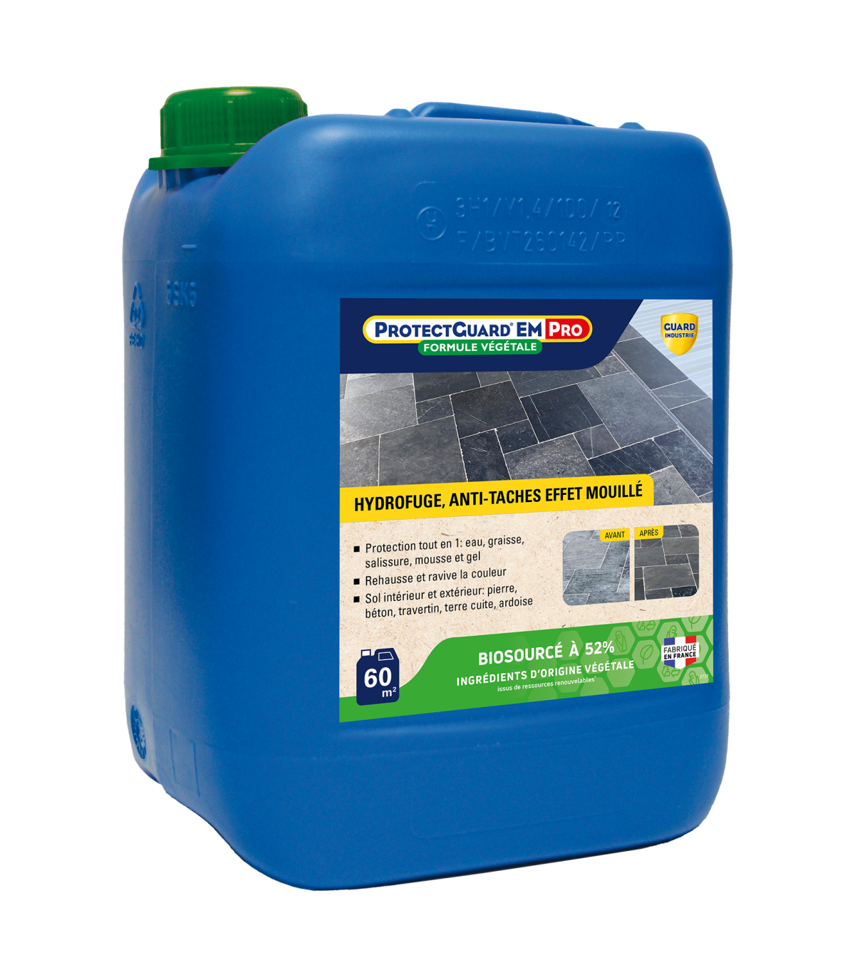 Offrant une efficacité exceptionnelle combinée à un respect de l'environnement, ProtectGuard EM Premium effet mouillé intense Hydrofuge Oléofuge Anti-tâches - Formule végétale est la solution idéale pour protéger efficacement les matériaux poreux comme la pierre, le béton, la brique ou les enduits contre l’eau, les taches et les agressions extérieures, tout en respectant l’environnement.
