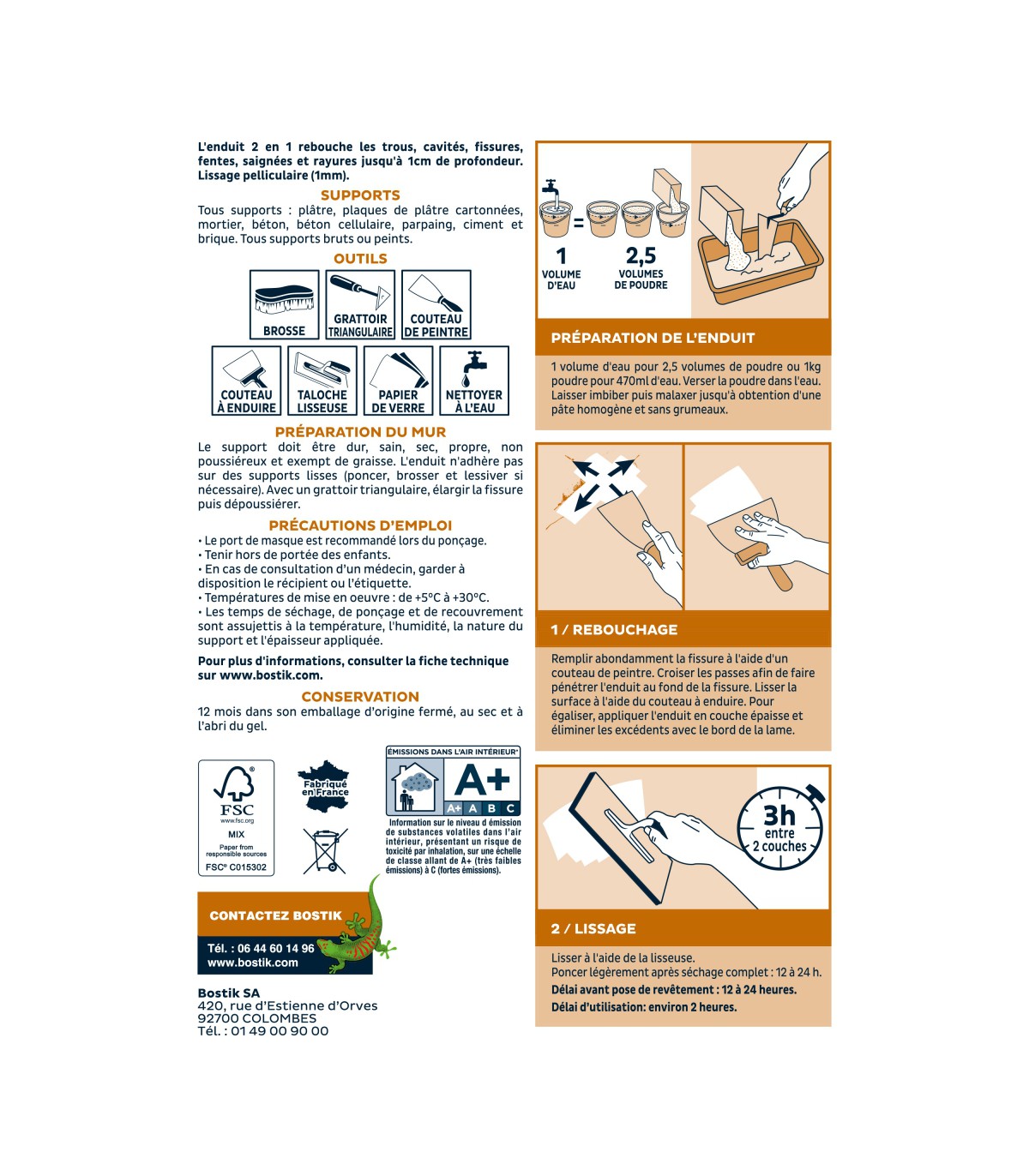 Rebouche jusqu’à 3 cm de profondeur Rebouchage très résistant Lissage de finition Polyvalent : rebouchage et collage Convient à tous supports intérieurs Prêt à l'emploi après mélange
