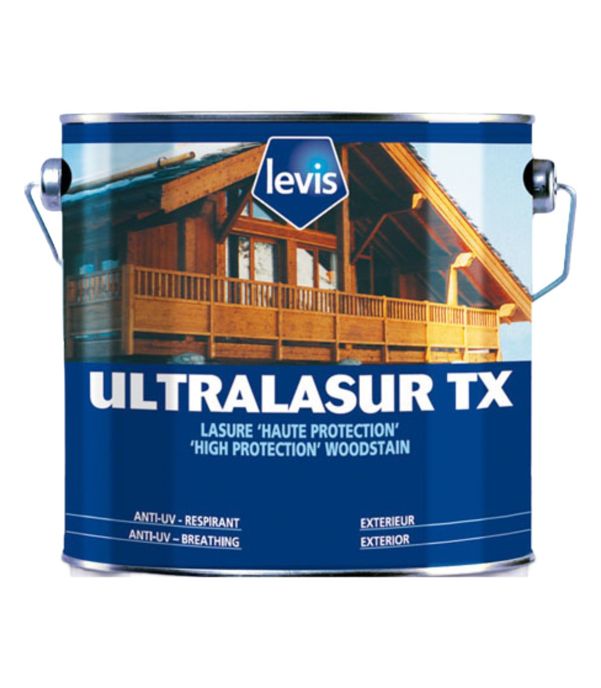 La lasure Levis Ultralasur TX est une lasure garnissante satinée à base de résines alkydes pour la protection et la décoration des boiseries en extérieur : portes, châssis, cloisons, lambris, charpentes, volets, clôtures, chalets…