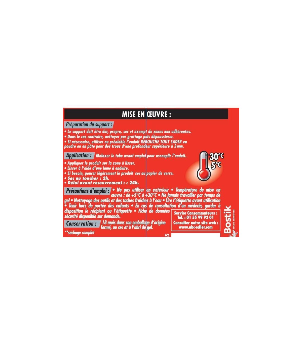 • Température de mise en œuvre : De +5°C à +30°C (intérieur).