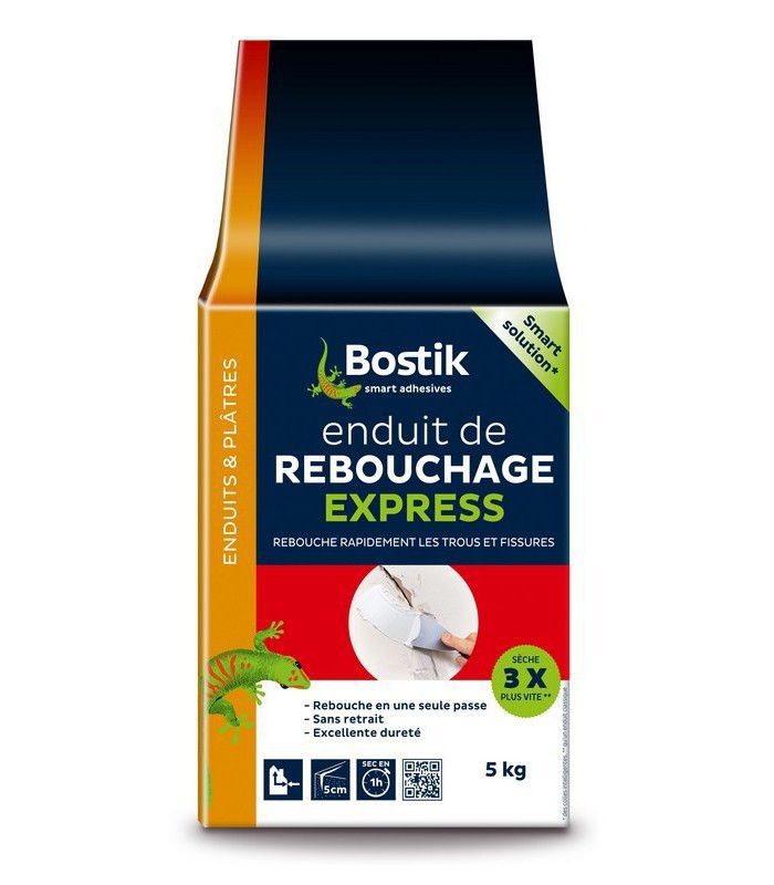 L'enduit rebouchage express en poudre Bostik permet de reboucher vos trous et fissures 3 fois plus vite qu'un enduit classique. Sa formule express garantit un séchage rapide et un rebouchage efficace jusqu'à 5 cm en une seule passe sans retrait ni fissuration.