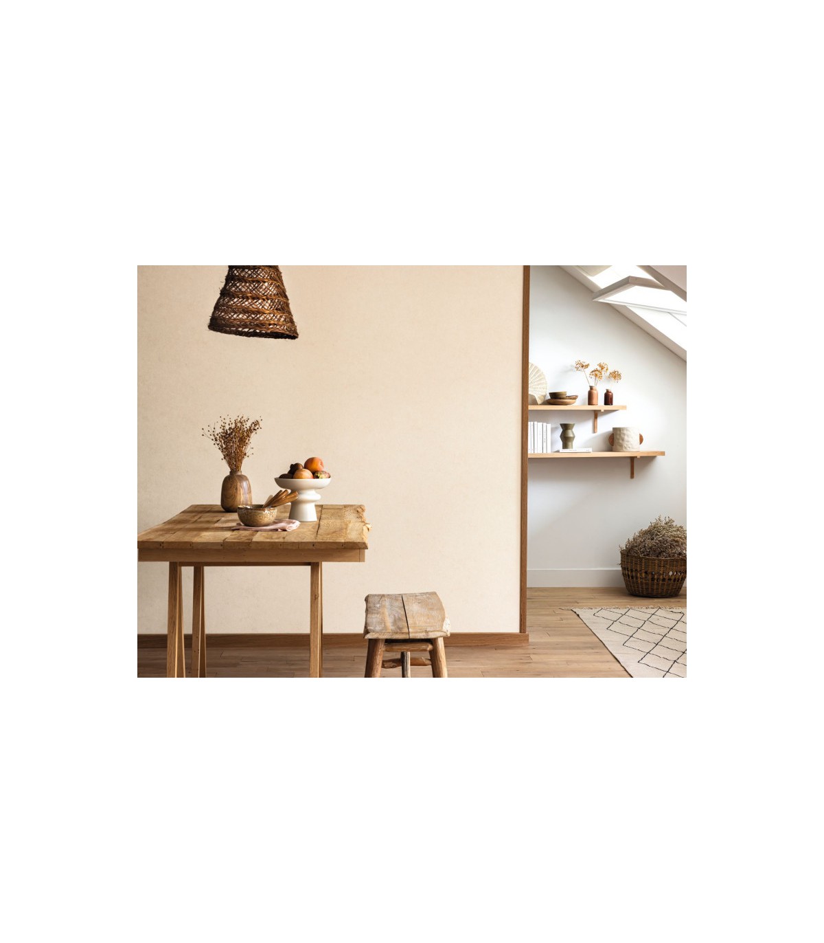 Bien plus que de simples aplats colorés, les unis irisé de la collection Céramique révèlent un aspect textile raffiné, qui apporte profondeur et douceur aux murs. Cette collection de papier peint, frais et apaisant, s’intègre avec élégance dans des univers variés : scandinave, bohème, contemporain ou nature chic. Utilisé en habillage complet, il crée une ambiance douce et enveloppante ; en mur d’accent, il met en valeur le mobilier et les accessoires décoratifs en toute subtilité.