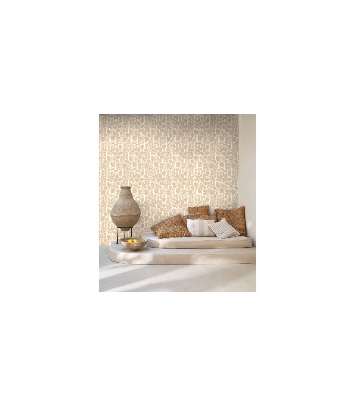 Papier peint Casadeco, Collection Échappée Belle - Intissé, grain lisse - Décor : Ramatuelle SABLE - JAUNE CITRONNADE - 0,53 x 10,05