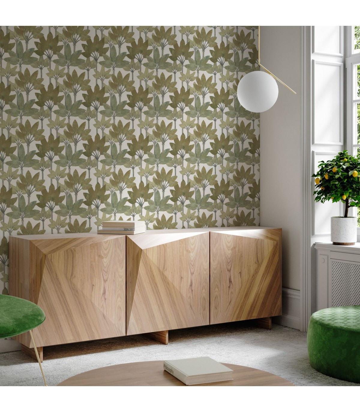 Papier peint Casadeco, Collection Babylone - Vinyle sur intissé, grain lisse - Décor : Babel VERT NIL - 0,53 x 10,05