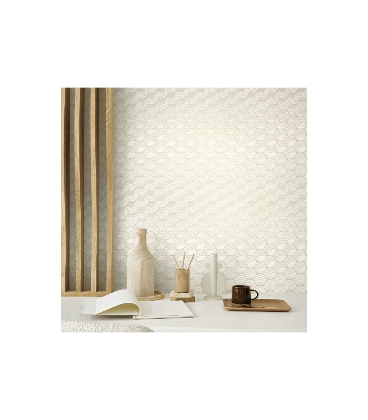 Papier peint Casadeco, Collection Alchimie - Intissé, grain lisse - Décor : Connexions NATUREL - 0,53 x 10,05