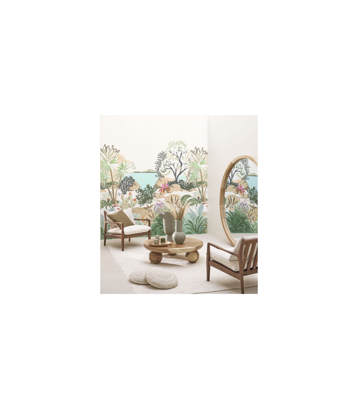 Papier peint Panoramique Casadeco, Collection Échappée Belle - Intissé, grain lisse - Décor : Cap Estérel Bleu - Format M : 210 x 280cm.