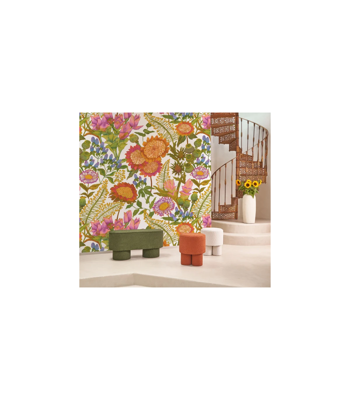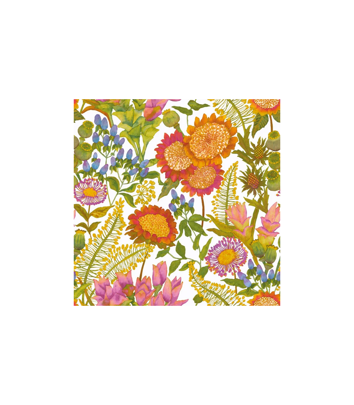 Cousin exubérant de Saint-Paul-de-Vence, le panoramique Les Baux de Provence est une allusion directe aux tissus provençaux. Ses fleurs ultra-généreuses, exotiques et colorées, font le sel de ce panoramique inspirant.