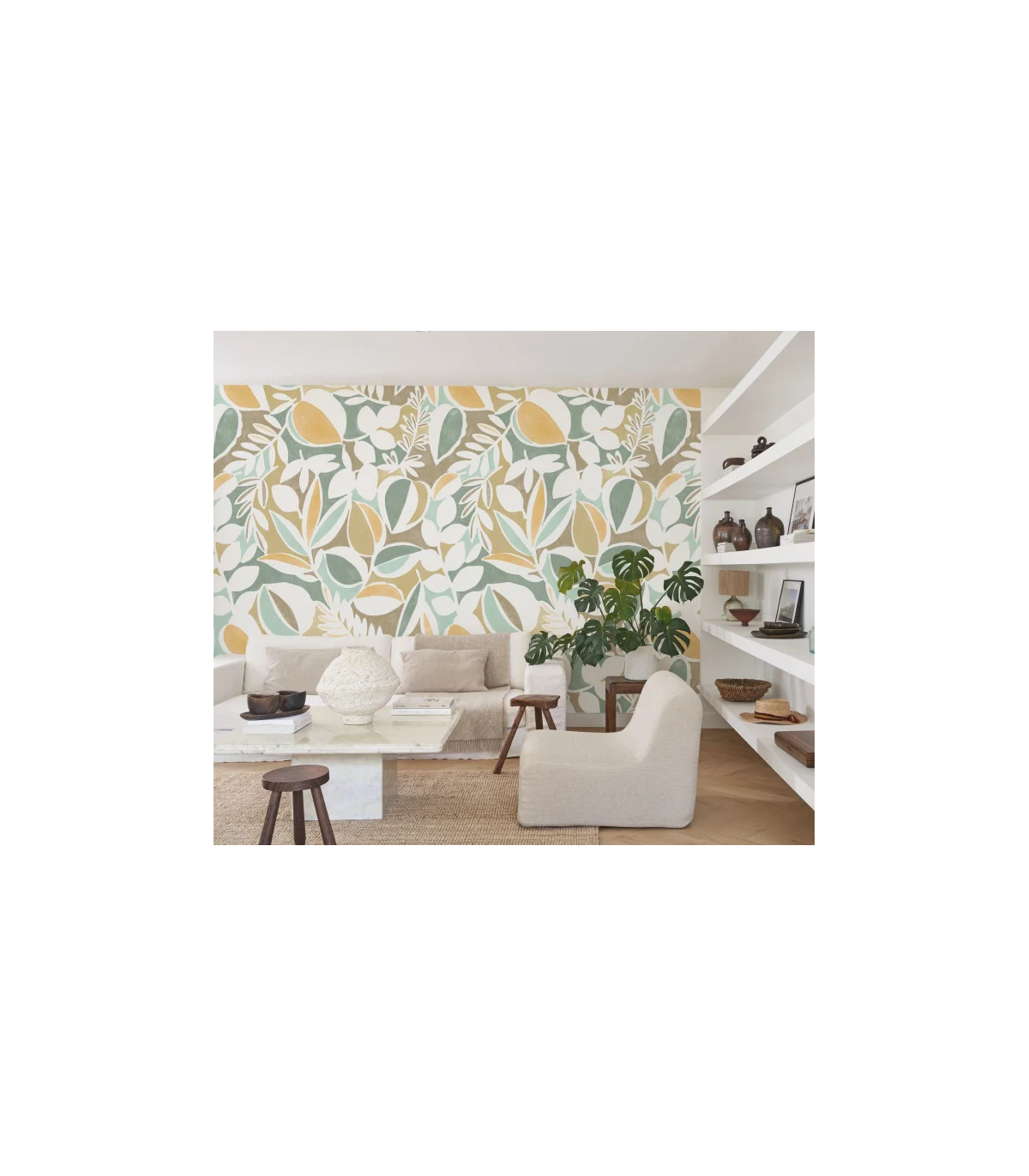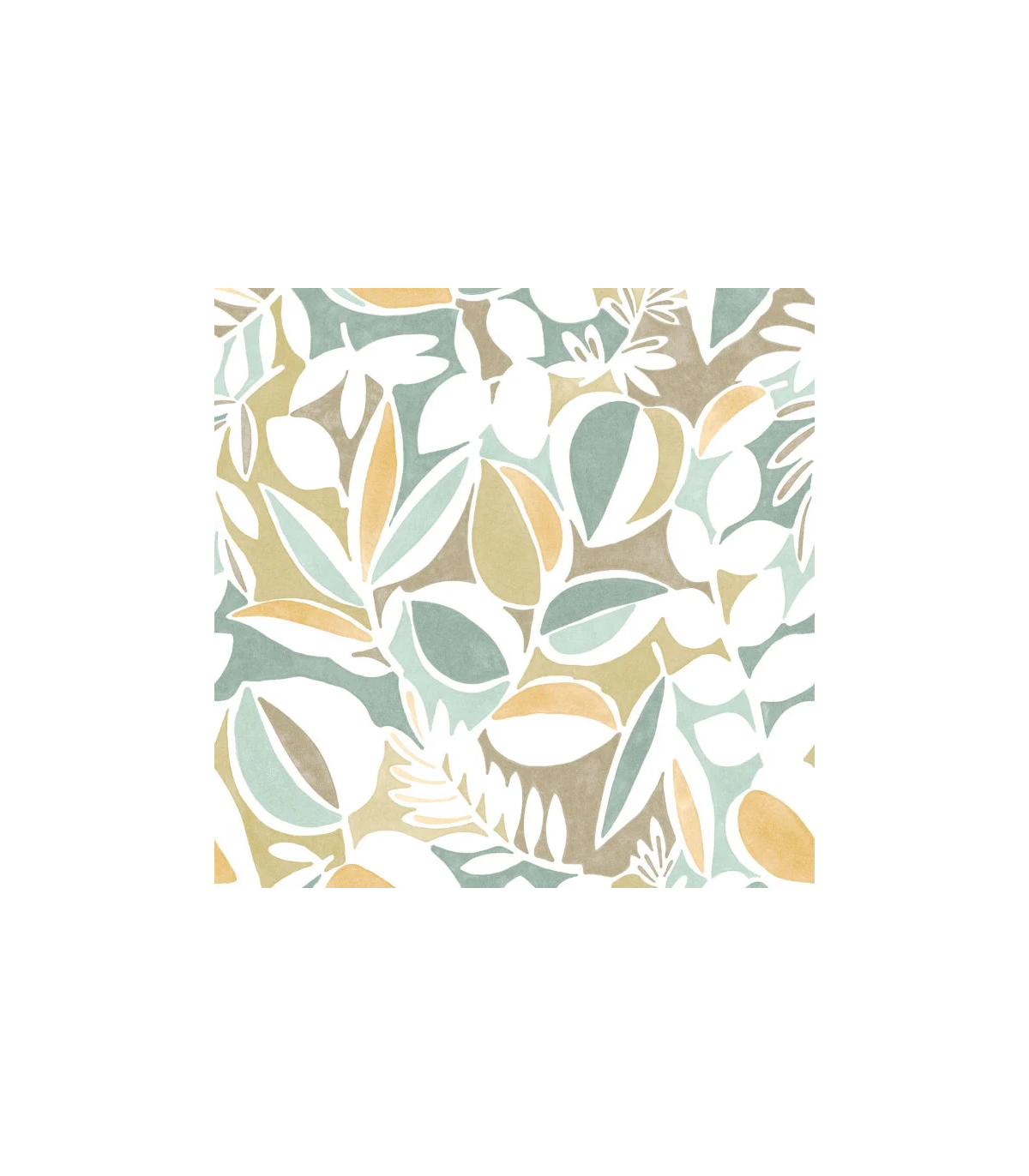 Plutôt glace au melon ou thé à la menthe ? Le Panoramique Place des Lices accueille deux tonalités pour son dessin floral : une déclinaison sur fond orangé, et une sur un arrière-plan vert-bleu. Pour lui offrir une texture encore plus originale, une légère patine a été appliquée sur le fond. Il évoque la célèbre place de St Tropez, à l’ambiance rythmée par le choc des boules de pétanque : on retrouve les feuilles de platane, les silhouettes des fruits et fleurs vendus sur les étals du marché…