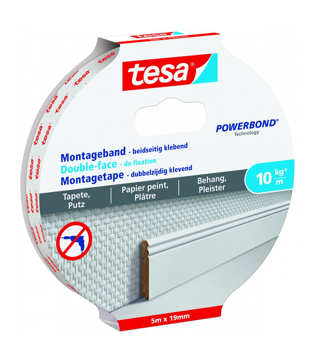 Le ruban Tesa Powerbond Double-Face pour Surfaces Délicates est spécialement conçu pour les supports sensibles, comme le papier peint texturé ou les murs en plâtre. Il permet de fixer solidement des objets décoratifs ou utilitaires sans percer, tout en respectant ces surfaces fragiles. Grâce à sa mousse PE compressible, il s’adapte aux irrégularités du support pour une adhérence durable. Ce système offre une tenue maximale de l’ordre de 10 kg par mètre, avec une recommandation de 6 kg par application pour garantir une durabilité optimale.