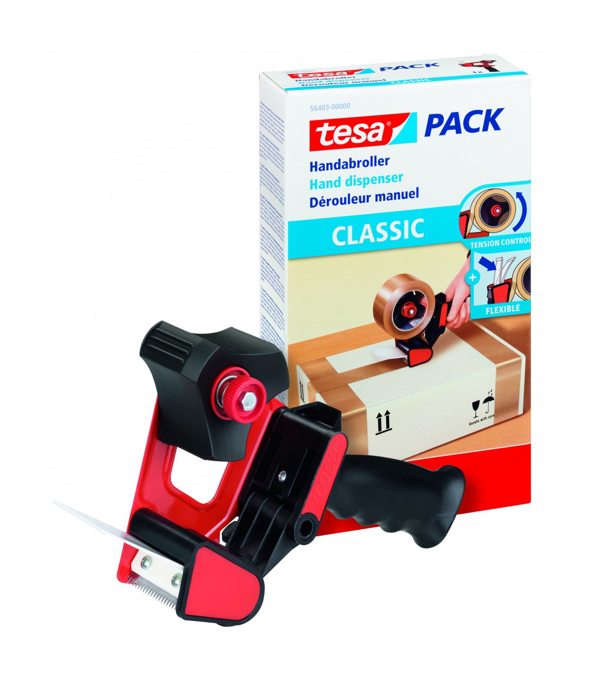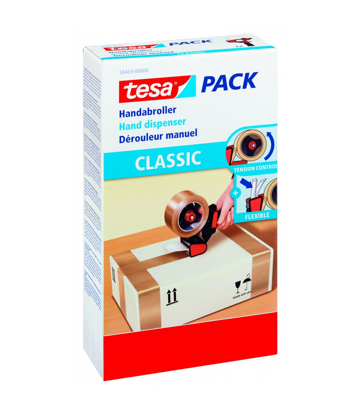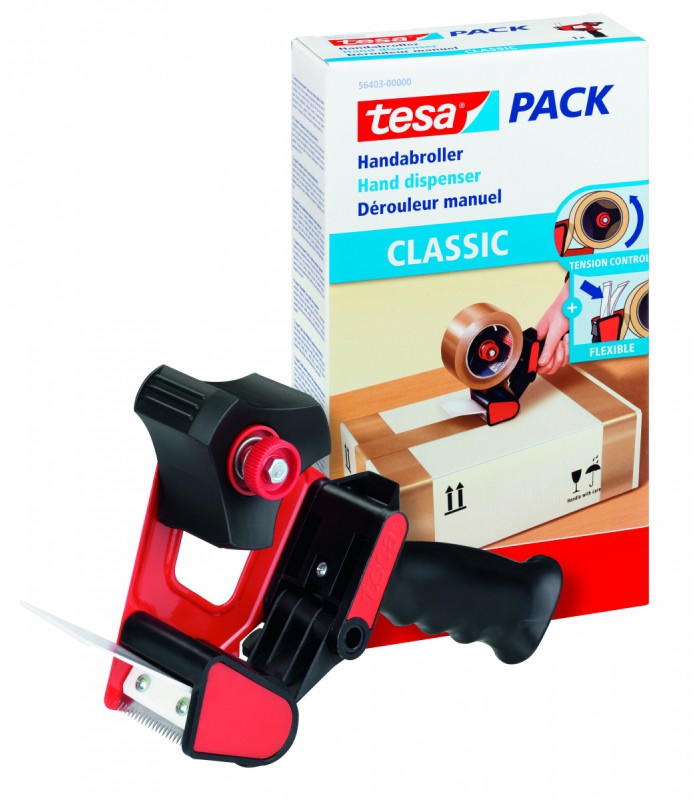 Le dérouleur manuel Tesa 56403 “Classic” est conçu pour faciliter et accélérer la fermeture de vos cartons et paquets. Sa structure en métal robuste assure une utilisation durable, même en milieu intensif, tandis que sa poignée pistolet ergonomique garantit une prise en main confortable, limitant la fatigue lors d’usages répétés. Le contrôle de tension réglable permet d’adapter le déroulement du ruban à vos besoins, assurant ainsi une application fluide et précise. Équipé d’un rouleau en caoutchouc et d’une languette souple, il offre une pose régulière du ruban, sans glissement. Sa lame remplaçable assure des découpes nettes et prolonge la durée de vie de l’appareil.