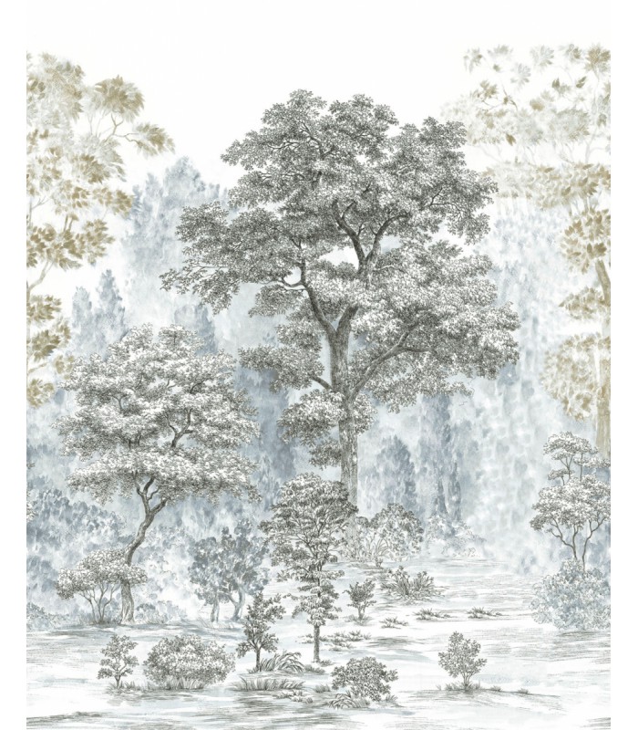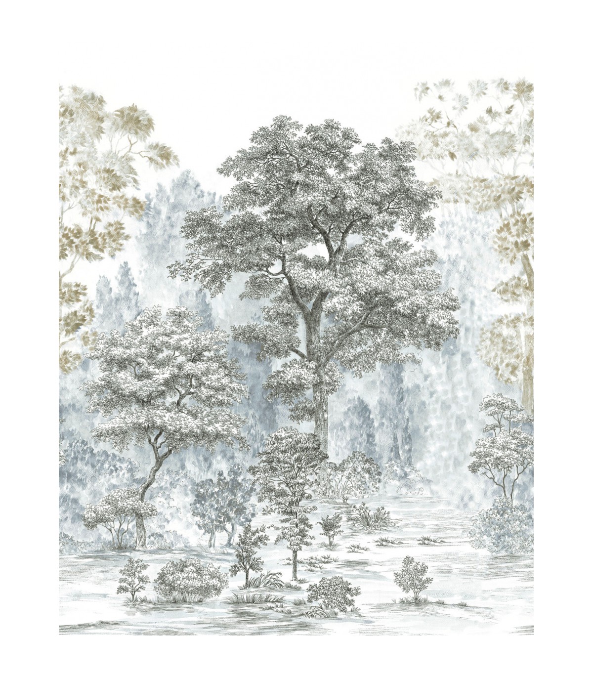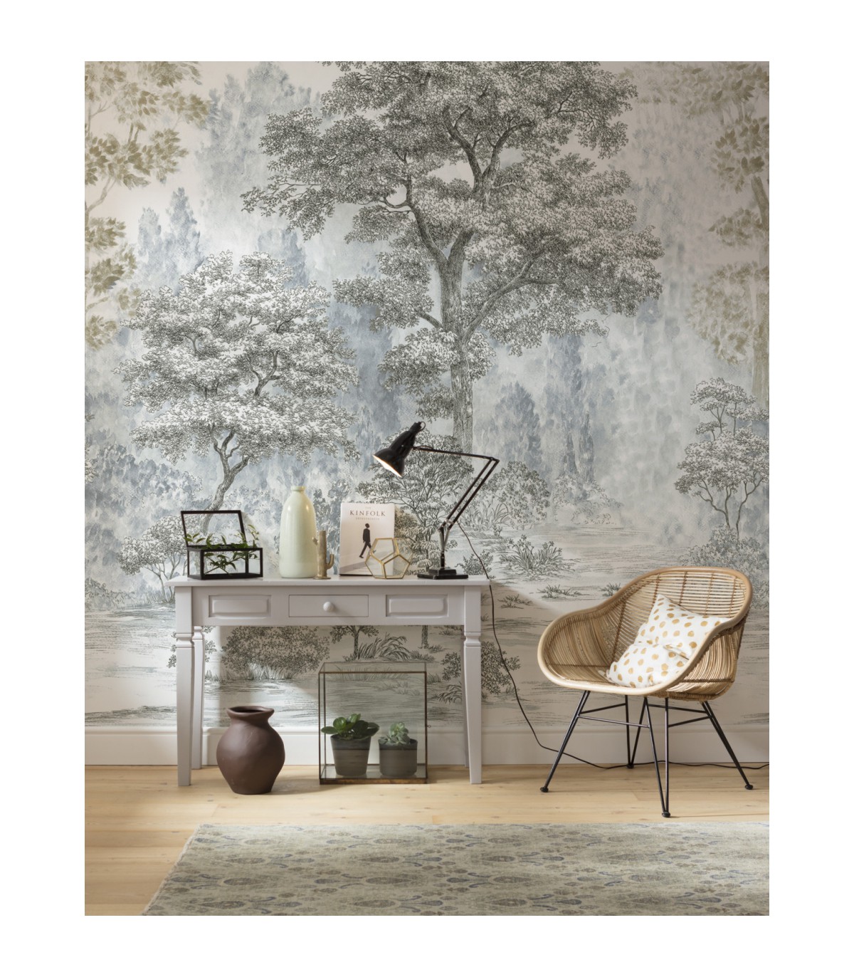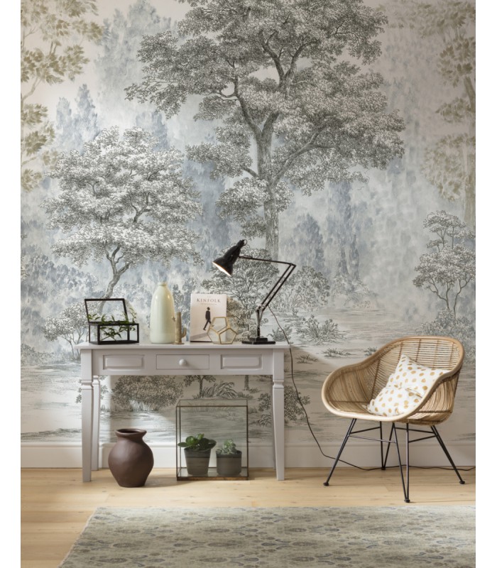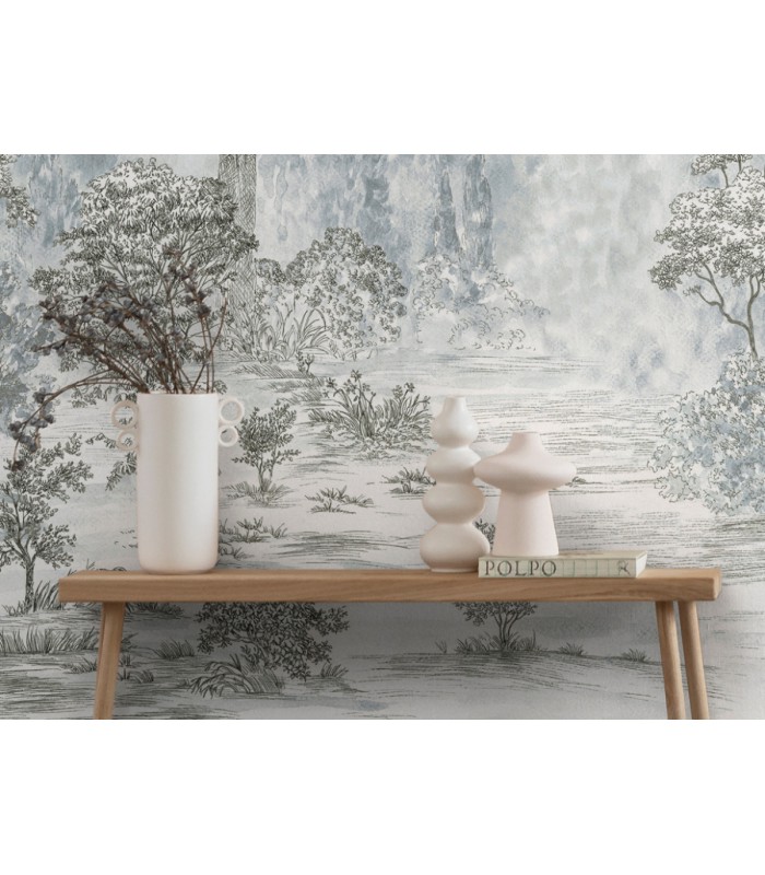 Un bleu clair frais et une mer de feuilles en filigrane se posent sur les murs et les enveloppent de leur charme naturel. Ce motif confère une vibe estivale et donne aux pièces légèreté et fraîcheur.