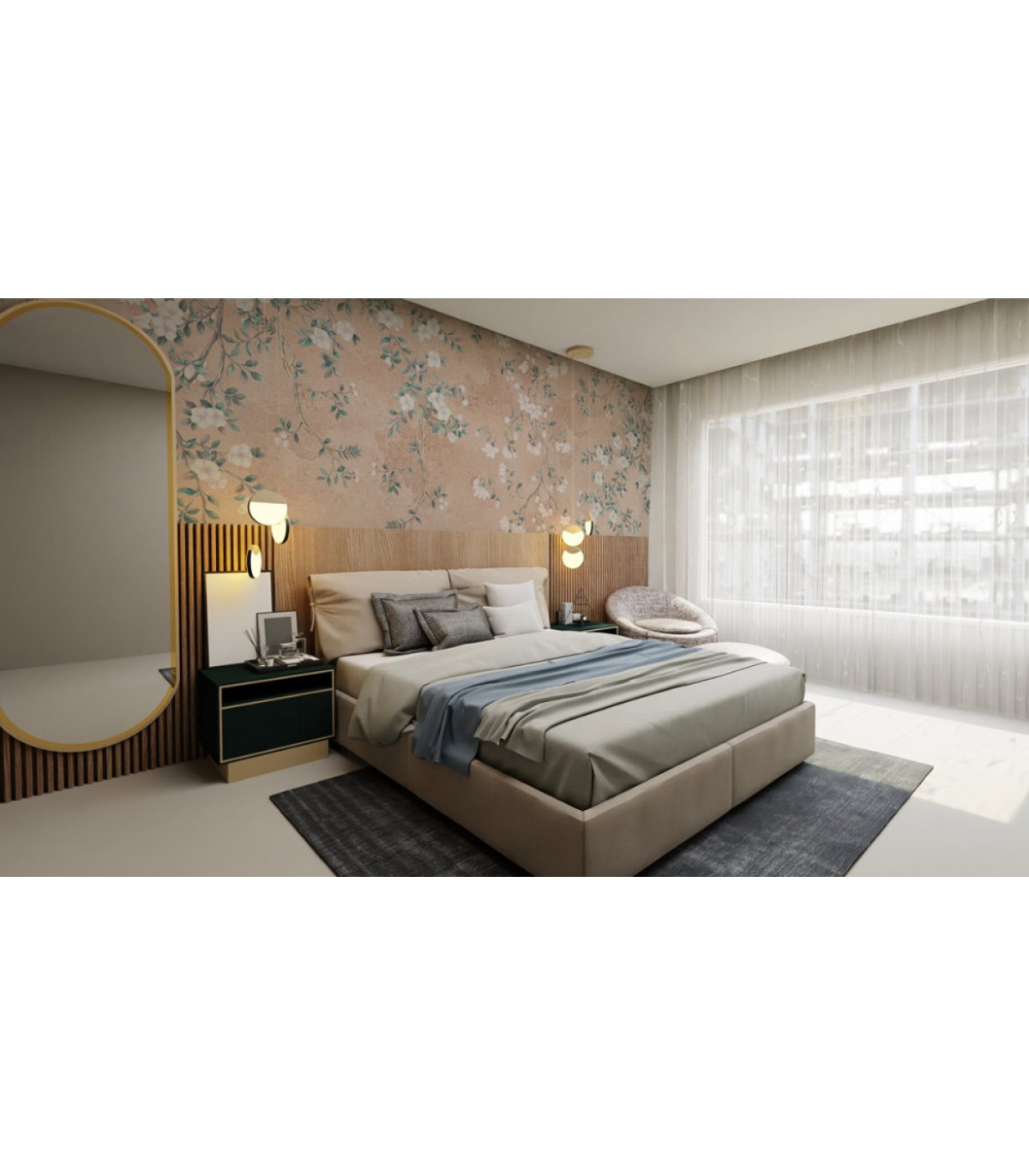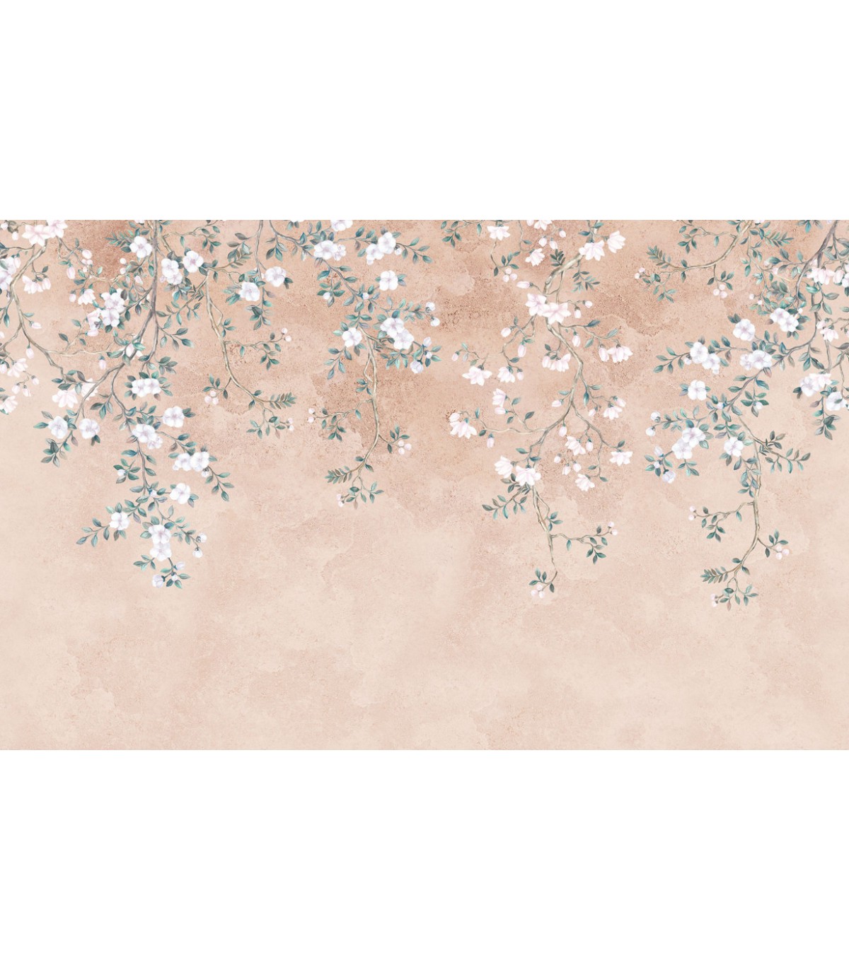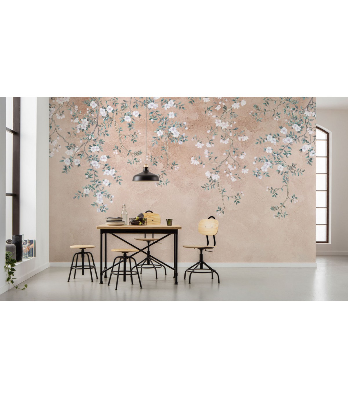 Ce motif de papier peint délicat décore les murs avec beaucoup de naturel. Les branches fleuries s'élancent doucement vers le centre du tableau et confèrent aux pièces une ambiance sensuelle.