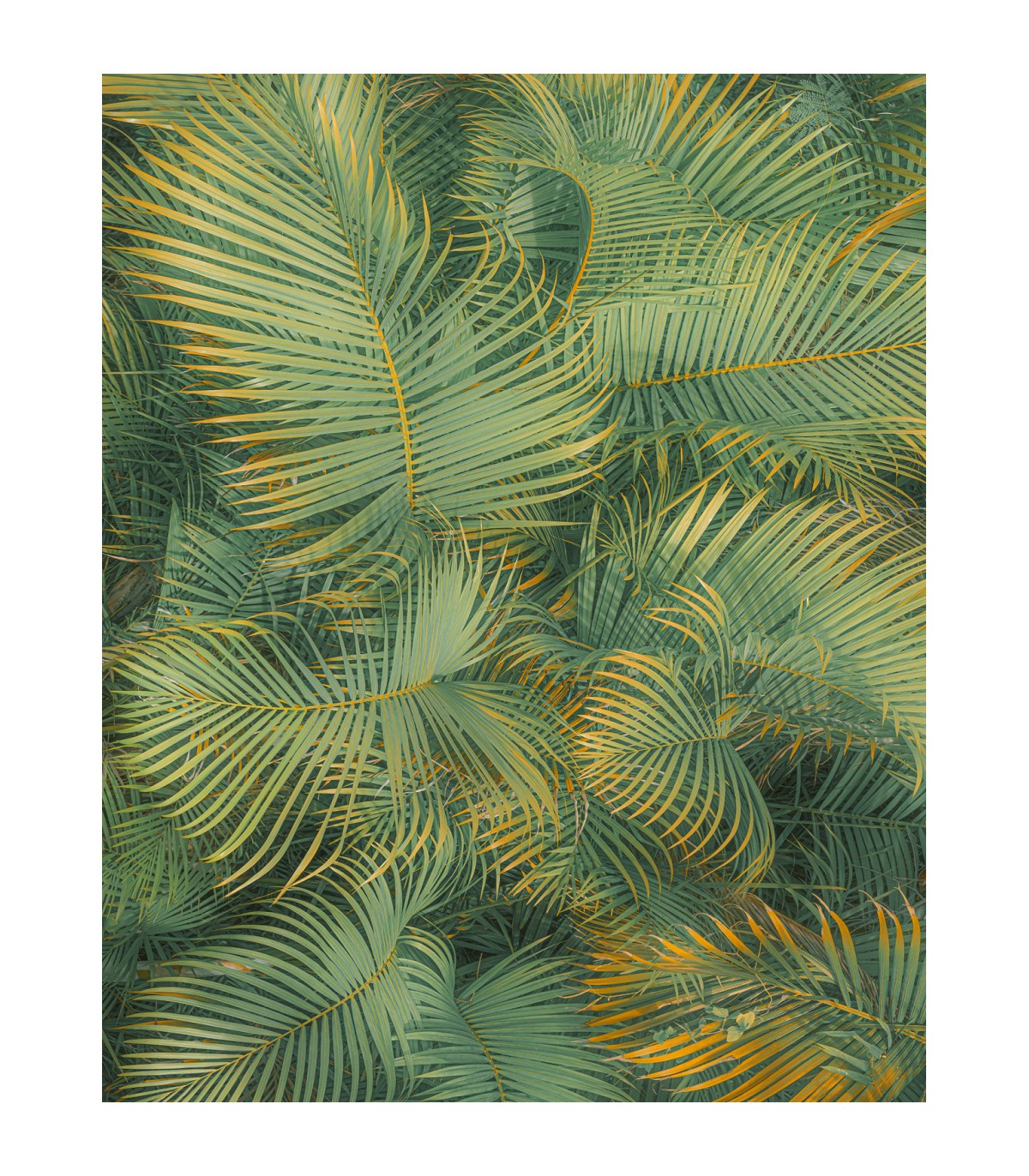 Grâce à la combinaison de verts doux et de jaunes rafraîchissants, on a l'impression de se trouver directement dans les fourrés d'une jungle. De plus, cette combinaison de couleurs a un effet à la fois apaisant et rêveur.