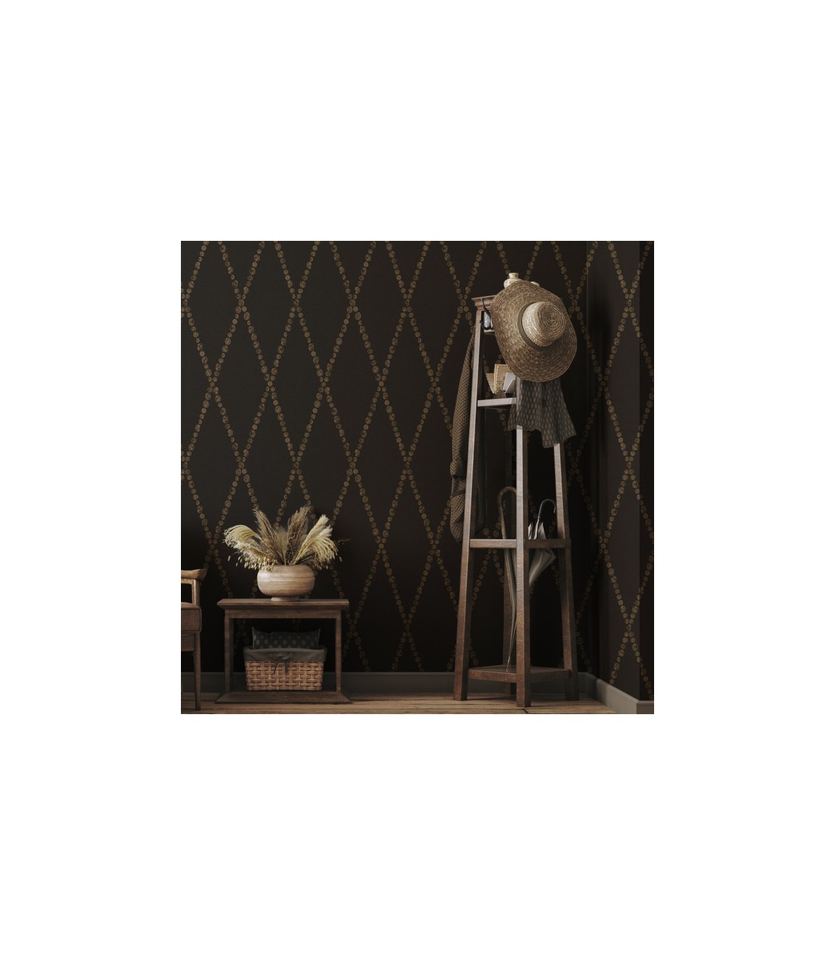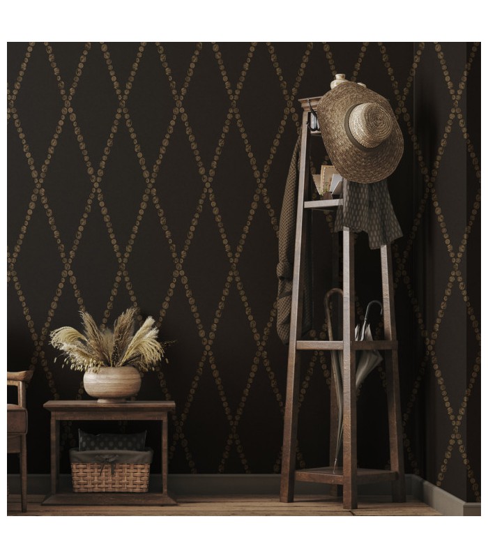 Évoquant un univers visuel mêlant différentes époques, ce papier peint illumine une pièce d'une beauté éternelle. Ici présenté dans sa version Gold on Charcoal