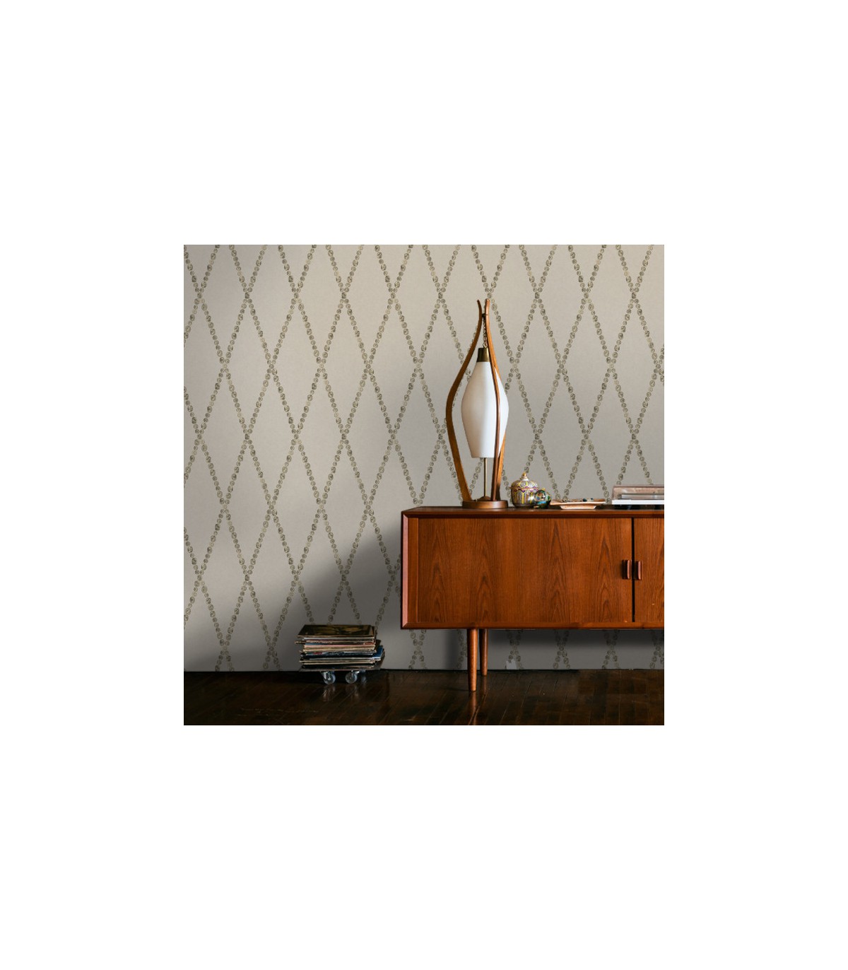 Évoquant un univers visuel mêlant différentes époques, ce papier peint illumine une pièce d'une beauté éternelle. Ici présenté dans sa version Soft Gold on Stone