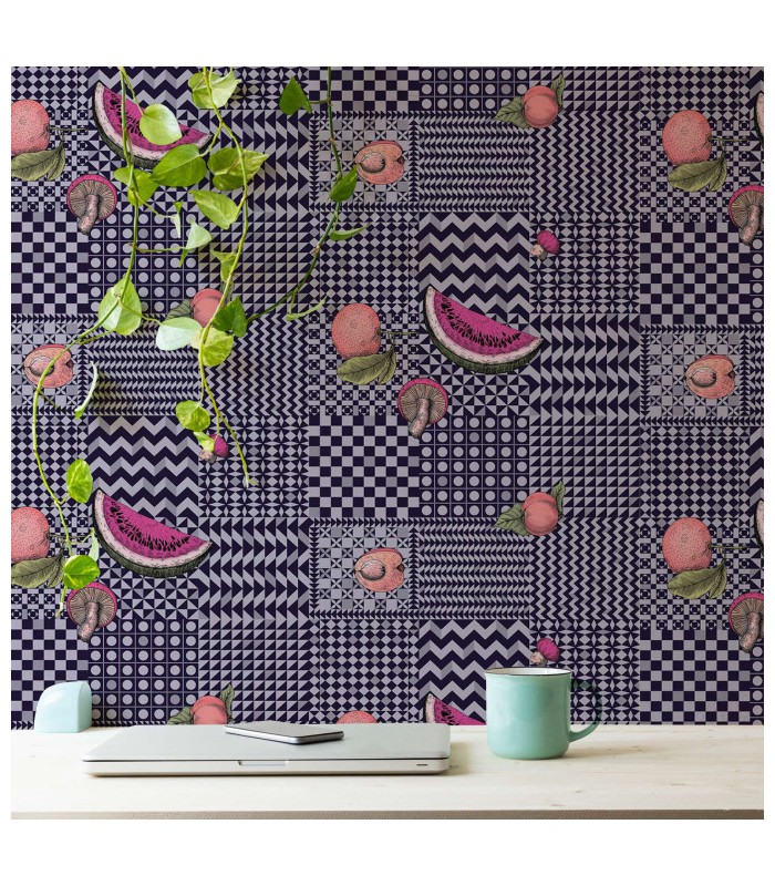 Papier peint FRUTTA E GEOMETRICO - Collection FORNASETTI SENZA TEMPO 2 - COLE&SON - REF 123/6028