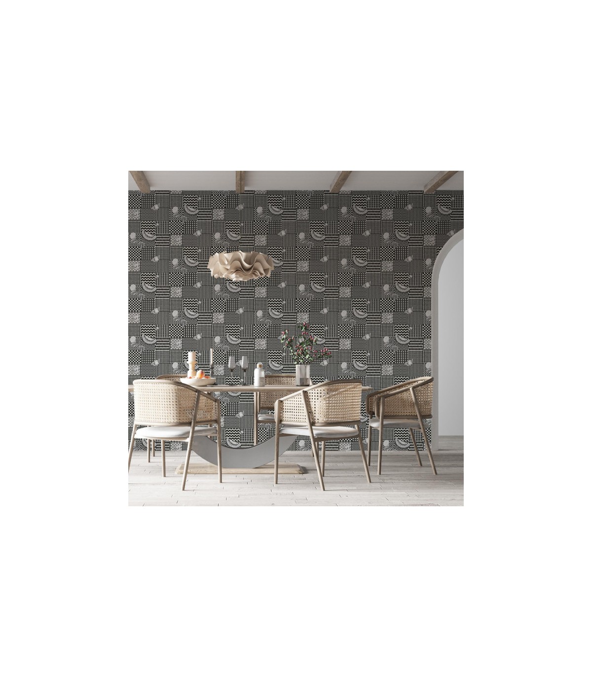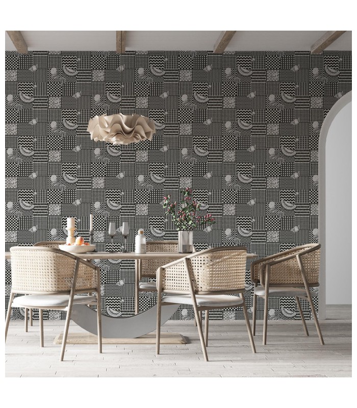 Le papier peint Frutta e Geometrico se distingue par son équilibre entre lignes structurées et motifs organiques, invitant le regard à se perdre dans un dialogue entre la nature et la géométrie. Sa palette de tons subtils met en valeur la précision du dessin, fidèle à l’esprit surréaliste et raffiné de Fornasetti. Dans un salon, une entrée ou un espace de lecture, il apporte une touche de sophistication joyeuse, à la frontière du décor et de l’art.
