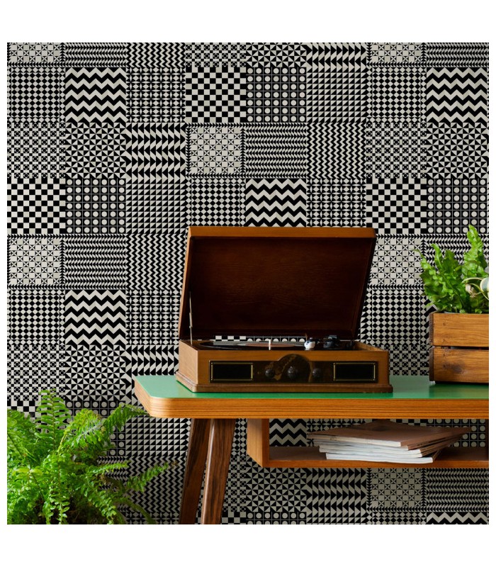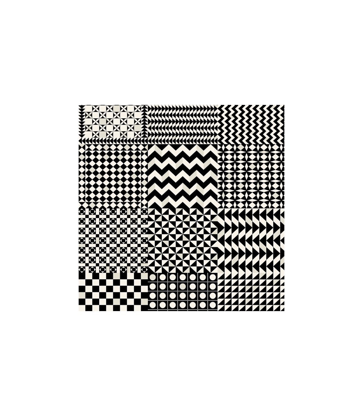 Piero Fornasetti a utilisé ce motif pour la première fois en 1954 pour la décoration de son écran "Geometrico". Variations sur le thème de l'échiquier et illusions perceptives jouant sur le contraste entre le noir et le blanc. Une incursion dans l'art abstrait, minimal et contemporain, sans sacrifier l'esprit excentrique de Fornasetti.