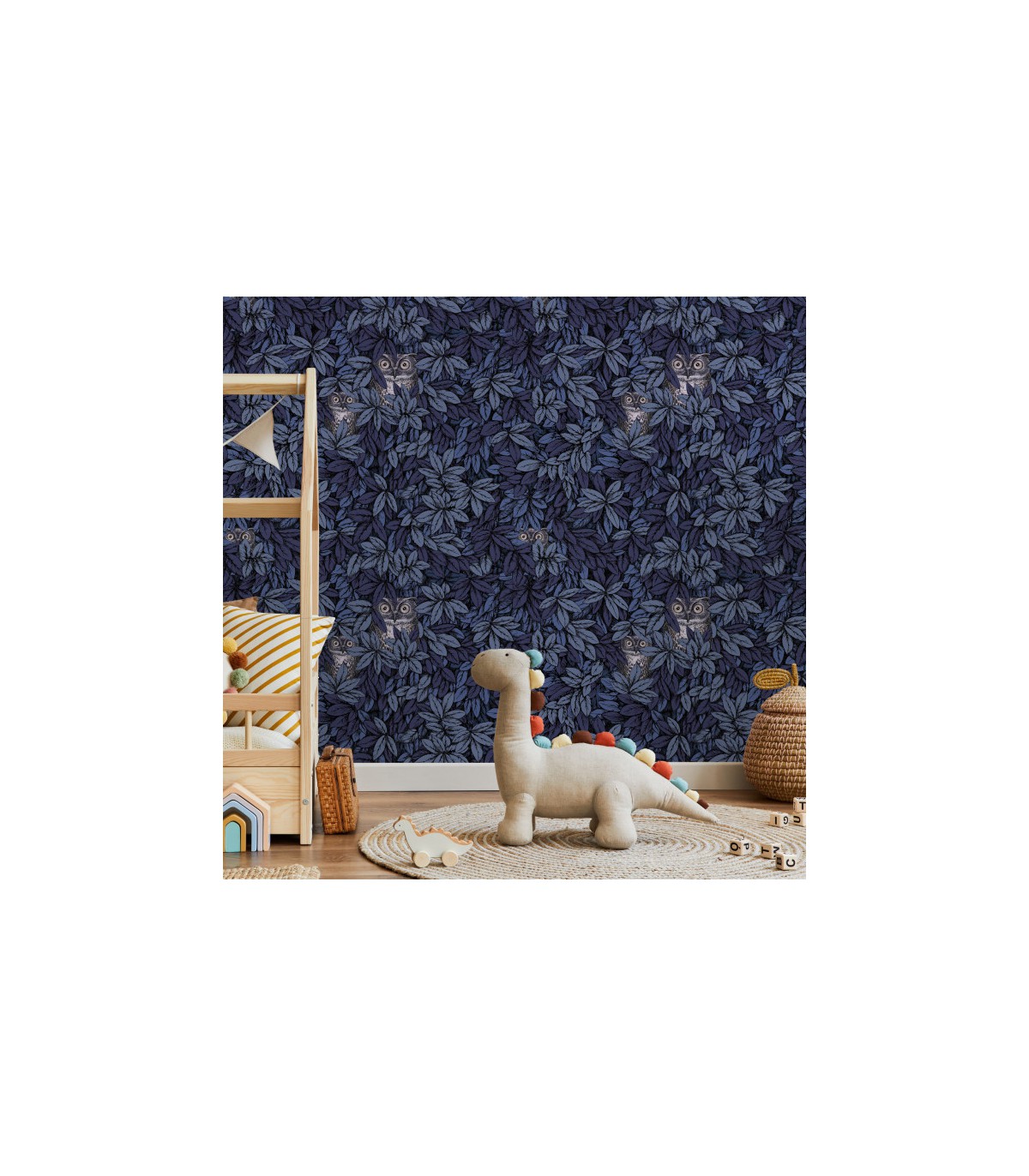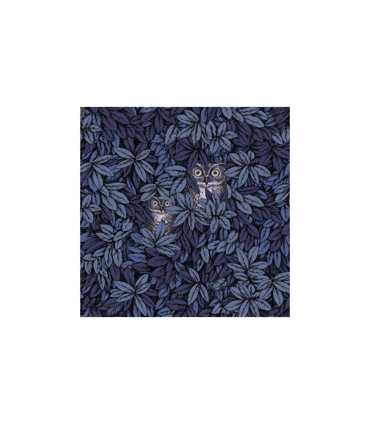 Le règne animal a longtemps peuplé l'imagination de Fornasetti et enrichit ce papier peint avec des hiboux vigilants nichés dans un épais manteau de feuilles Chiavi Segrete dans des tons riches de saphir et de citrine, ainsi que dans des tons plus doux de pierre et de vert de feuilles printanières. Ici présenté dans sa version Midnight