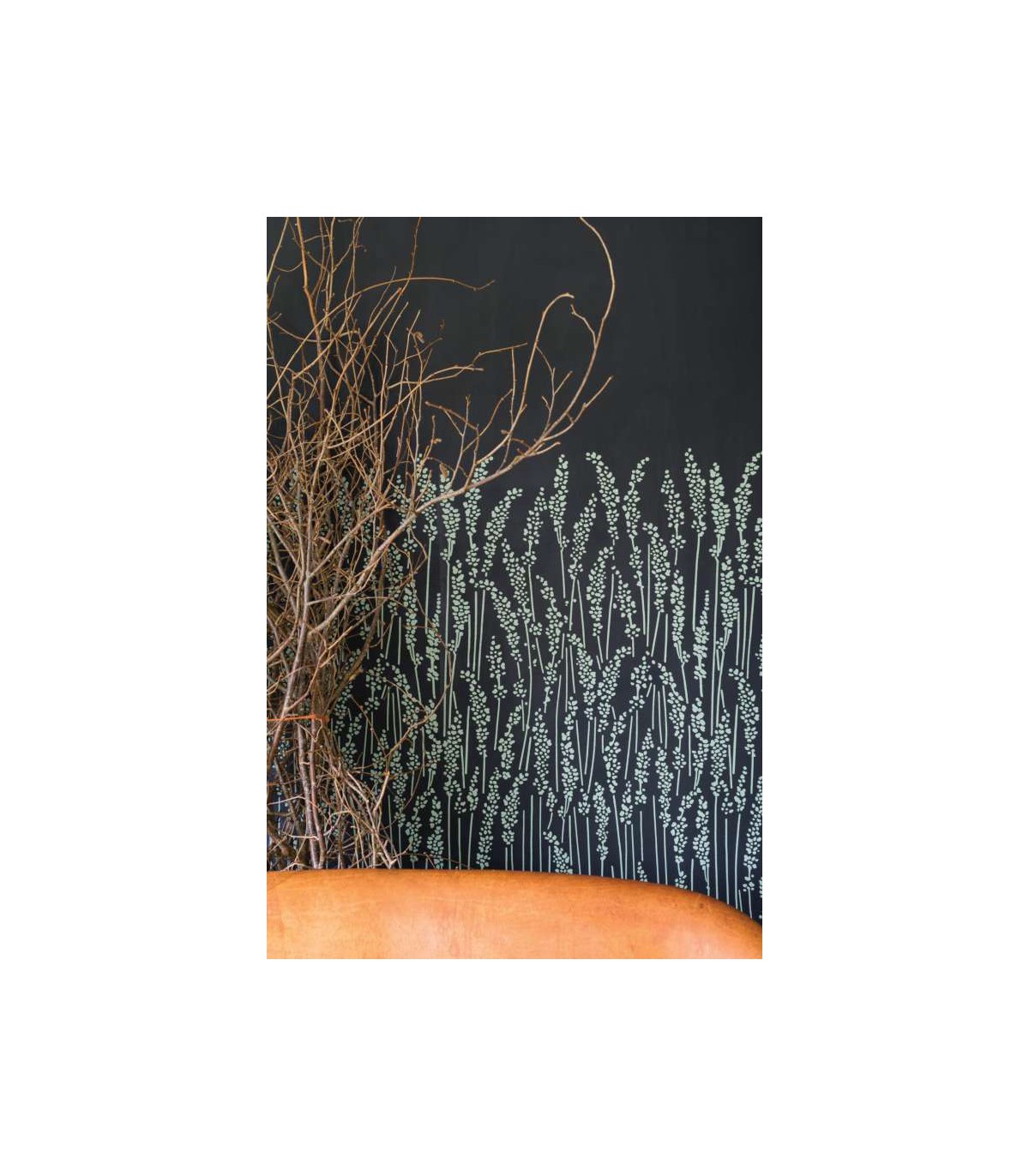 "Le motif grand format et à mi-hauteur de Feather Grass évoque les journées d'été oisives et contemplatives passées dans la campagne idyllique du Dorset. Ses hautes tiges délicates apaisent naturellement l’ambiance, tandis que leur léger mouvement dans la brise souffle un air de poésie dans le décor.