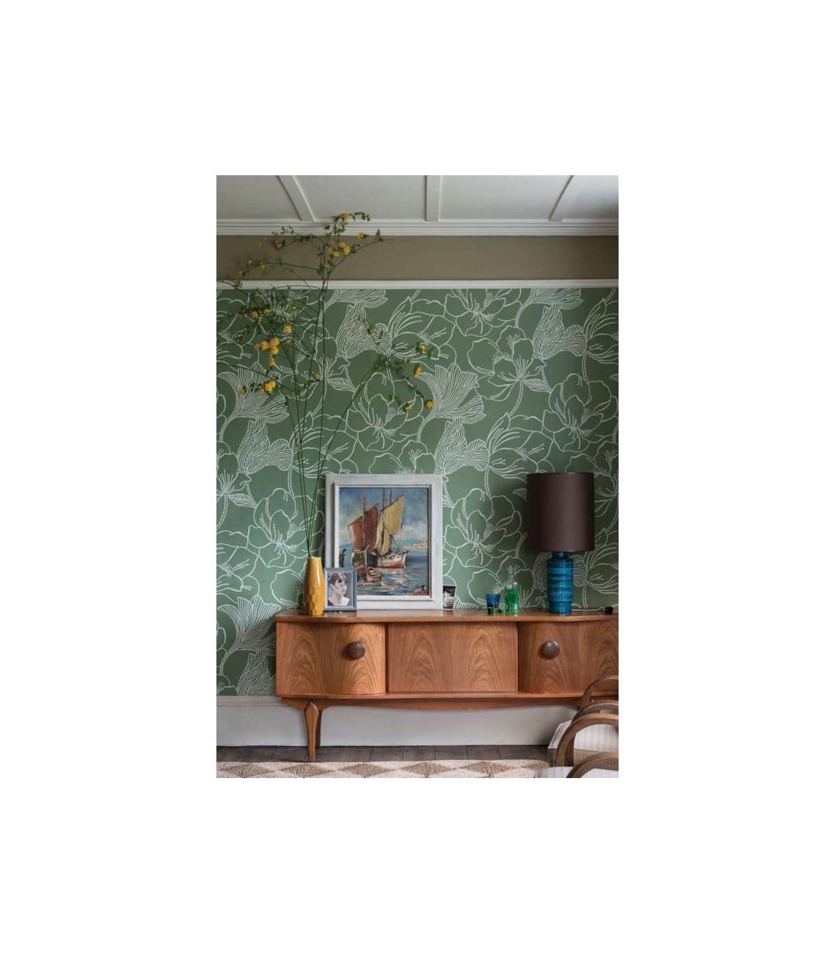 "Nom latin de la fleur d’hellébore, ou rose de Noël, ce motif maximaliste figure parmi les plus grands de notre collection de papiers peints. Dessinées à l’aide d’une pipette pour donner un sentiment de fluidité, les fleurs déploient leurs pétales sur les murs avec largesse et générosité. Grandiose, le motif libère l’espace intérieur en ouvrant les esprits au merveilleux.