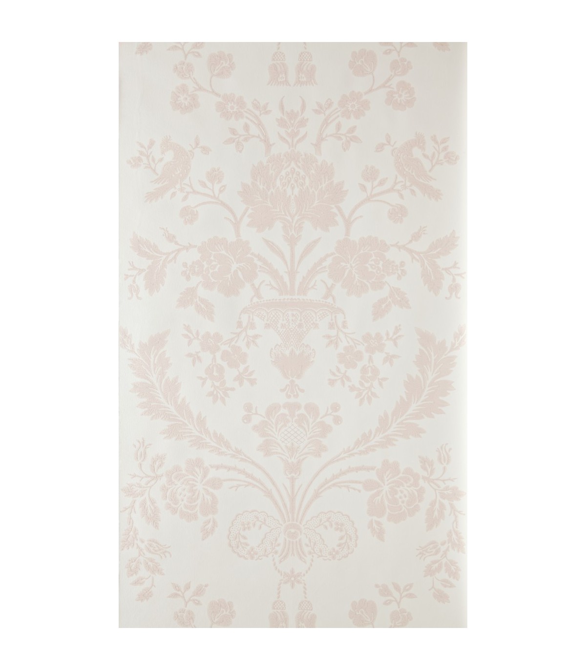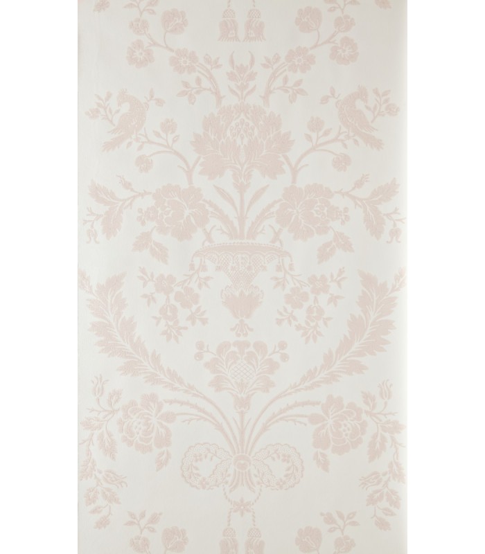 "Ce papier peint damassé et opulent tient son nom du lieu où son motif a été créé, en 1793. Aujourd'hui encore, les coquets oiseaux, fleurs abondantes et riches feuillages qui le composent amènent luxe et bonheur dans tous les intérieurs.