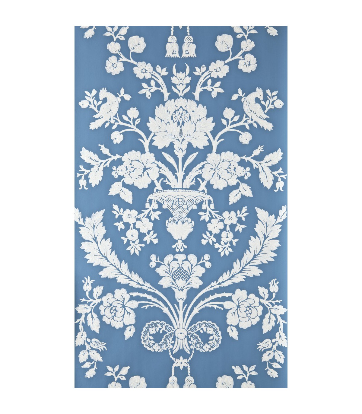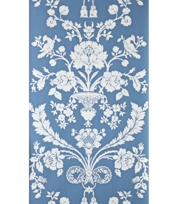 "Ce papier peint damassé et opulent tient son nom du lieu où son motif a été créé, en 1793. Aujourd'hui encore, les coquets oiseaux, fleurs abondantes et riches feuillages qui le composent amènent luxe et bonheur dans tous les intérieurs.