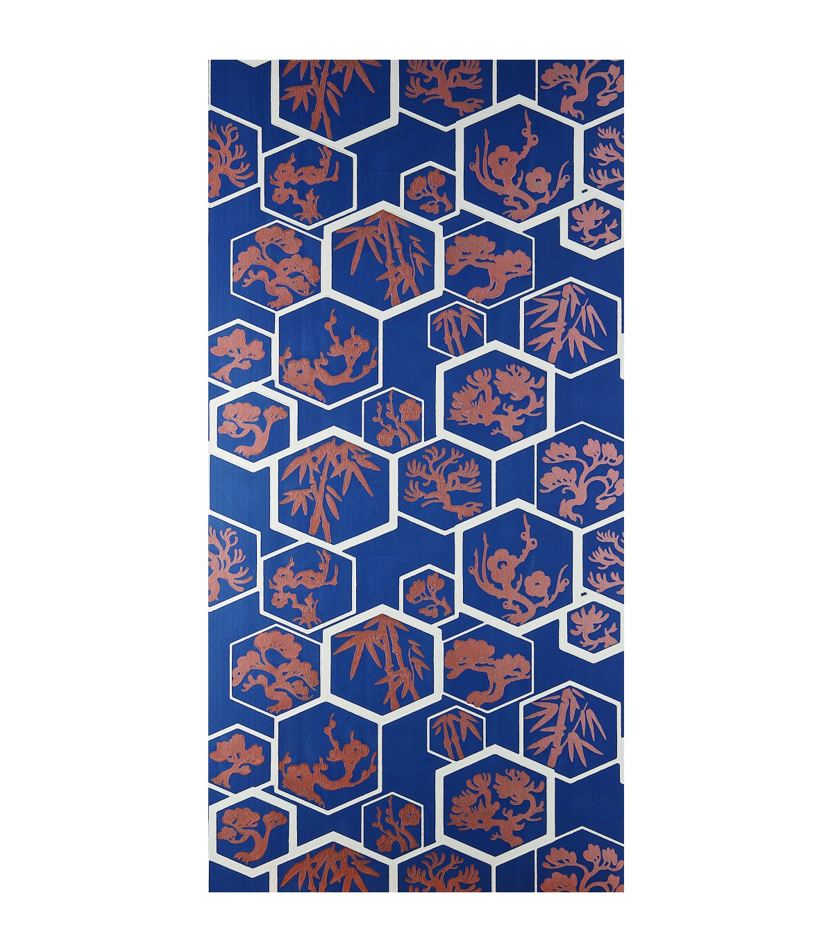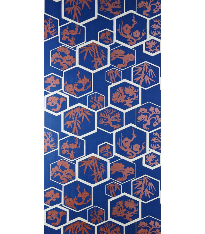 "Terme japonais sans équivalent, Shouchikubai désigne les trois amis de l’hiver que sont la prune, le pin et le bambou, qui ont pour point commun de résister aux mois les plus froids, ce qui en fait, en Extrême-Orient, des symboles de force, de beauté et de longévité. Dans leurs cadres hexagonaux, ces motifs végétaux, insufflent grâce et élégance dans le décor, quel que soit l’espace qu’ils habillent.