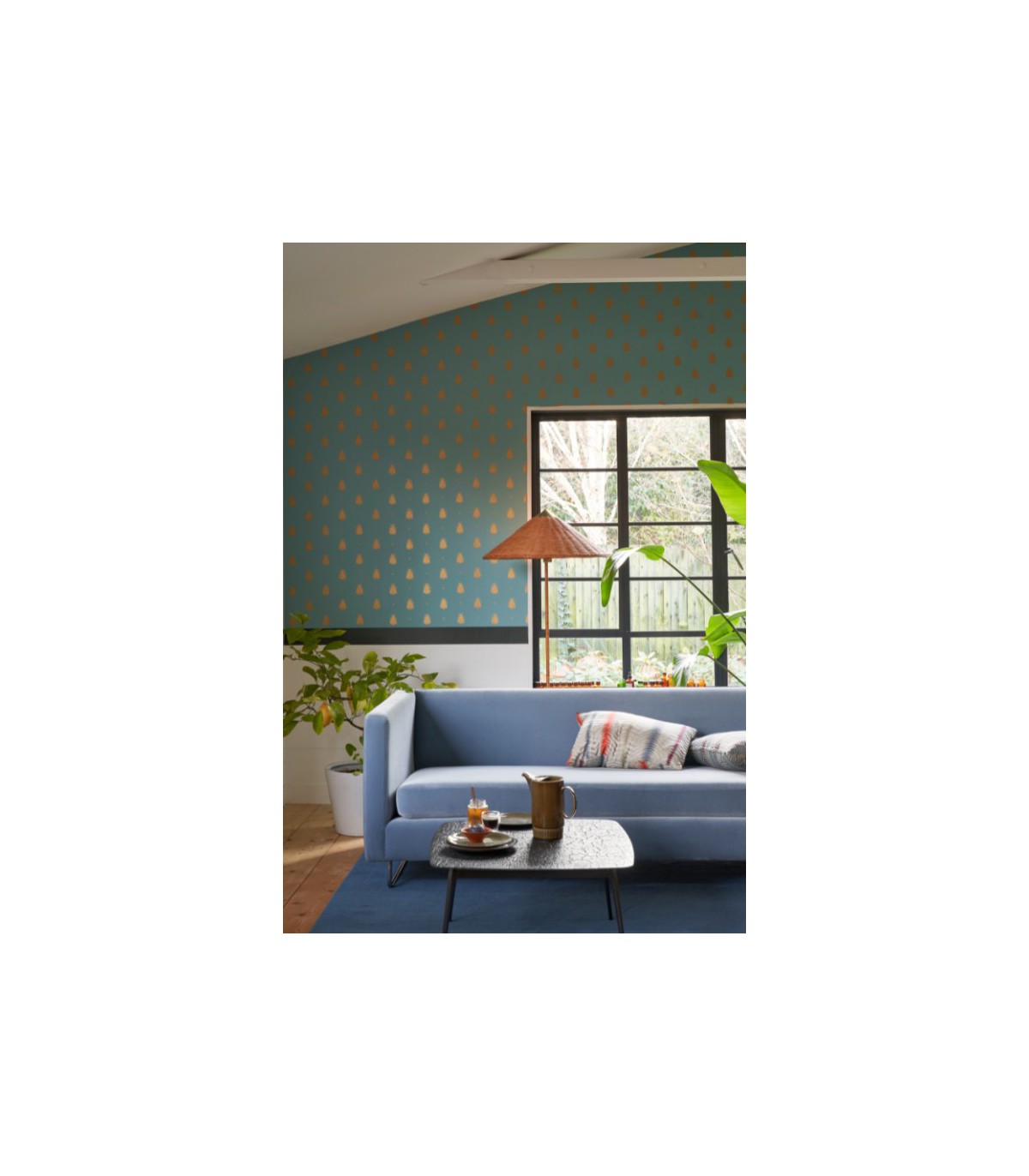 "L’association ludique d’abeilles et de pois s’avère du plus heureux effet, et ce dans n’importe quelle pièce de la maison. Inspiré par un imprimé découvert sur des soieries qui ornaient la chambre de Joséphine de Beauharnais, ce papier peint aéré ponctué de motifs de petits formats, pose un décor classique.