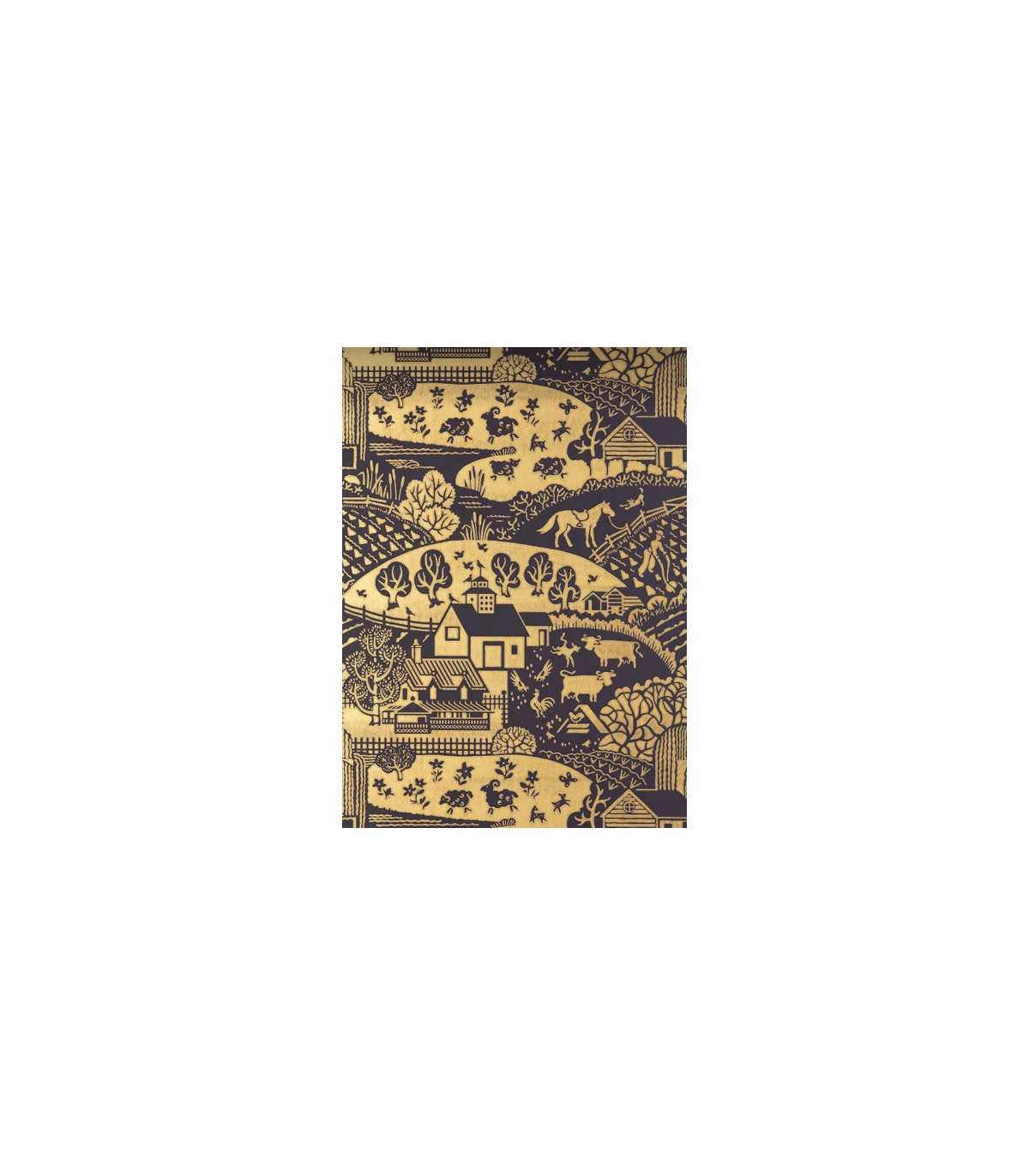 Représentant une scène champêtre pleine de charme constituée de champs labourés, de clôtures et d’animaux de la ferme, Gable restitue parfaitement la candeur d’une époque où la vie était plus simple. Ce dessin aux motifs entremêlés est parsemé de détails ludiques qui stimulent l’imaginaire.
