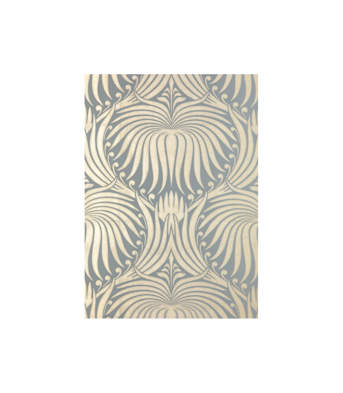 "Inspiré de la période Belle Époque, le motif Lotus apporte une touche vintage élégante typique du XIXème siècle dans les maisons traditionnelles comme contemporaines. Les fleurs qui s’épanouissent au mur sont imprimées directement à partir de peinture Farrow & Ball, ce qui donne cet effet texturé au papier et cette dynamique au motif.