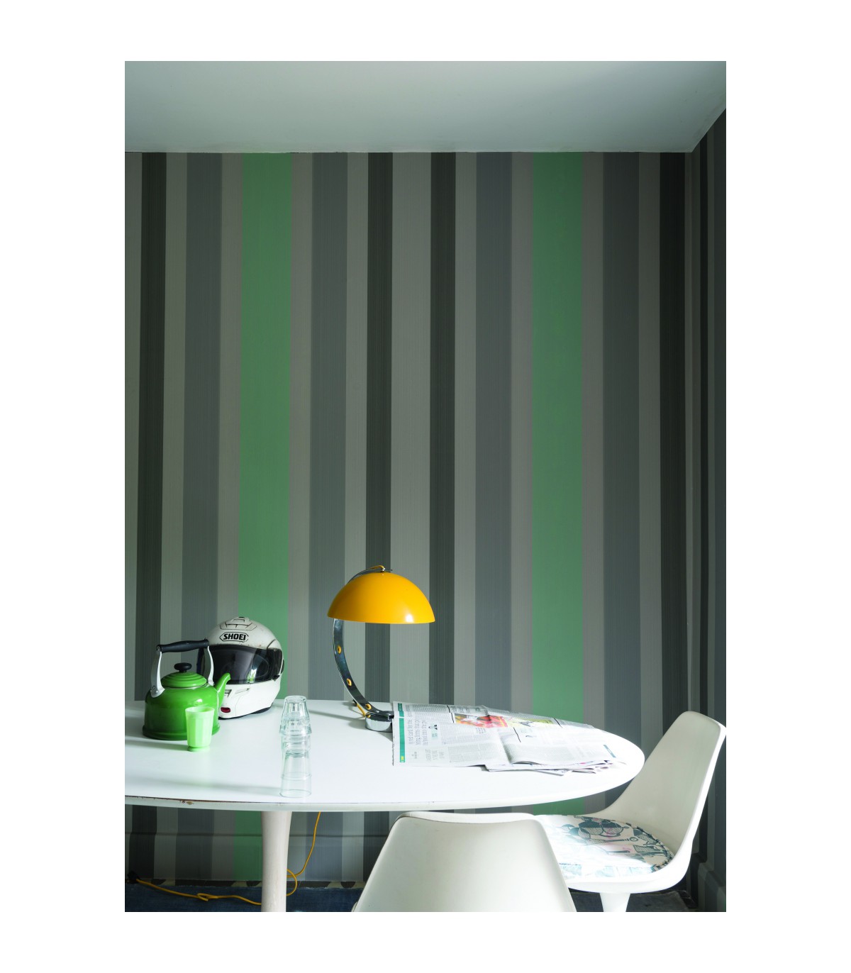 "Les variations chromatiques subtiles de chacune de ses rayures confèrent à Chromatic Stripe le charme intemporel d’un motif rayé classique, avec une touche supplémentaire d’originalité et de relief. S’il habille n’importe quel espace remarquablement, il peut être appliqué verticalement comme horizontalement.