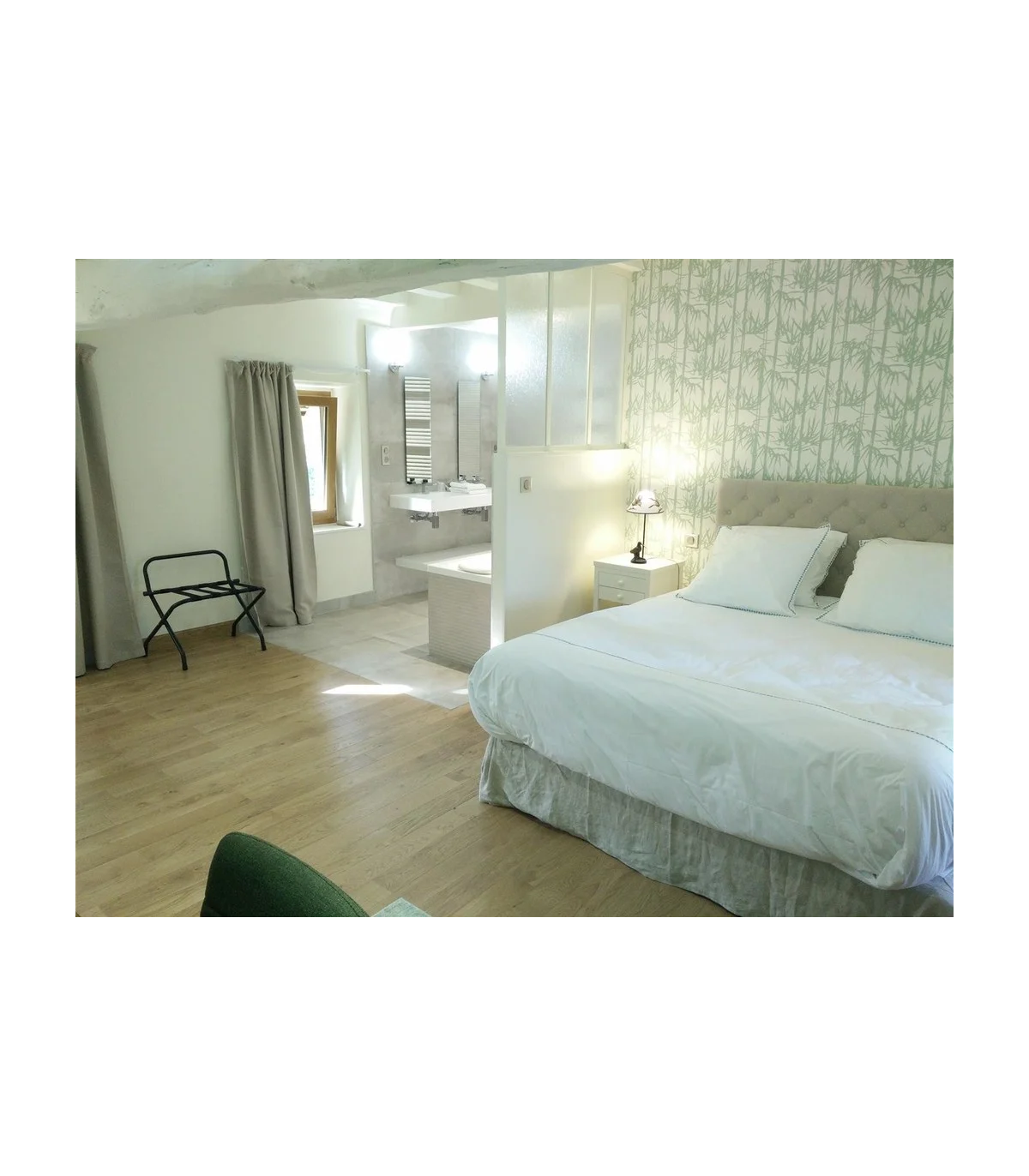 "Avec ses motifs botaniques luxuriants, notre papier Bamboo capture l’esprit de la gravure sur bois japonaise. Ses tiges florissantes, imprimées à partir de peinture Farrow & Ball et selon des méthodes traditionnelles, ont un aspect texturé unique et semblent presque avoir été dessinées au pinceau.