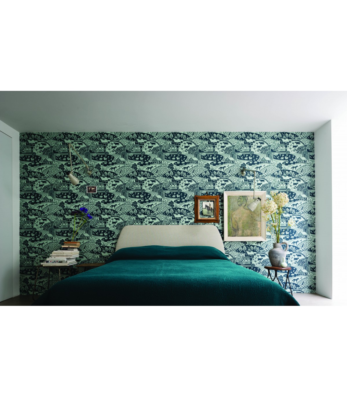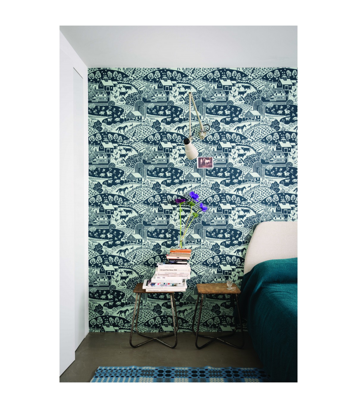 "Représentant une scène champêtre pleine de charme constituée de champs labourés, de clôtures et d’animaux de la ferme, Gable restitue parfaitement la candeur d’une époque où la vie était plus simple. Ce dessin aux motifs entremêlés est parsemé de détails ludiques qui stimulent l’imaginaire.