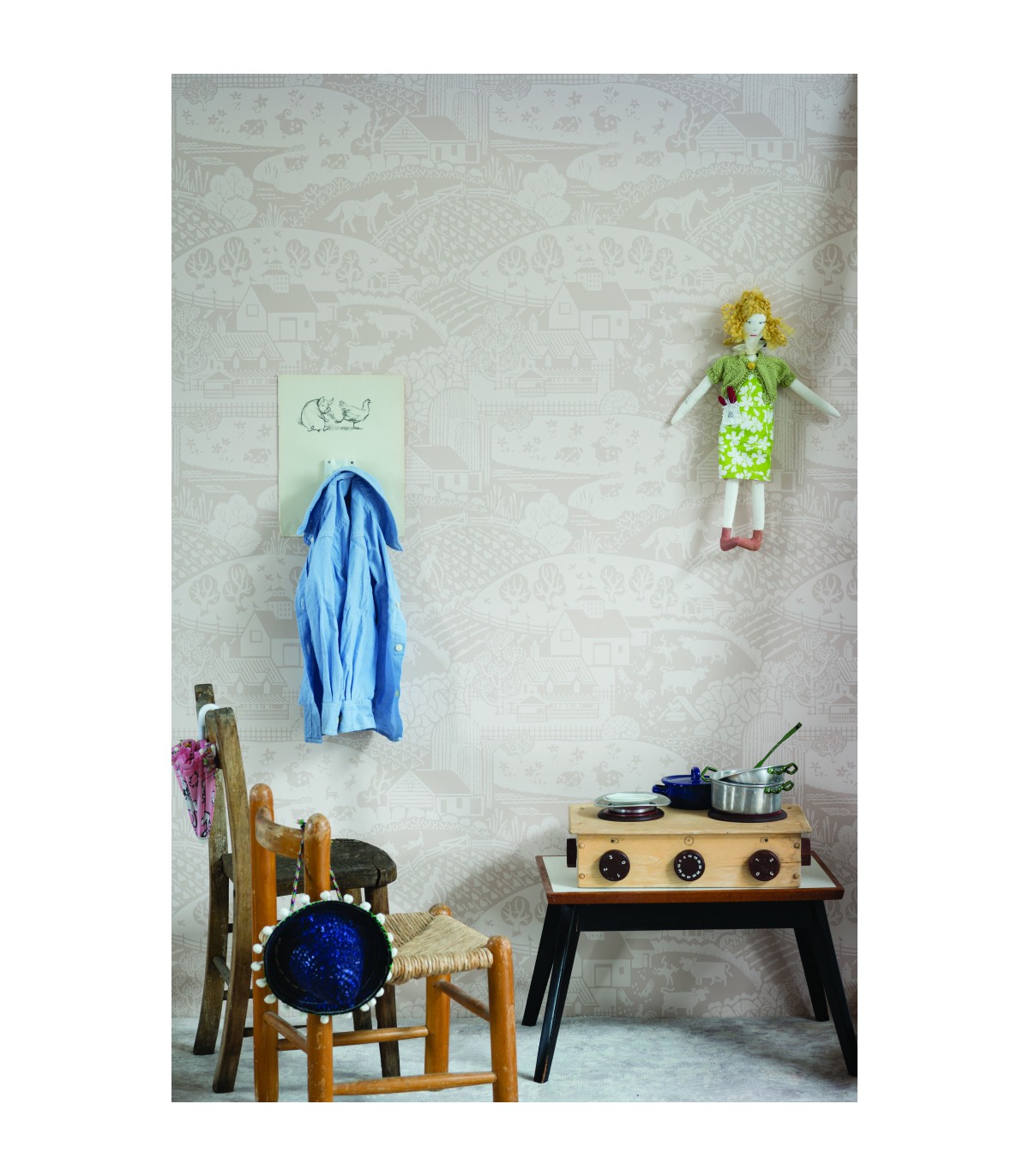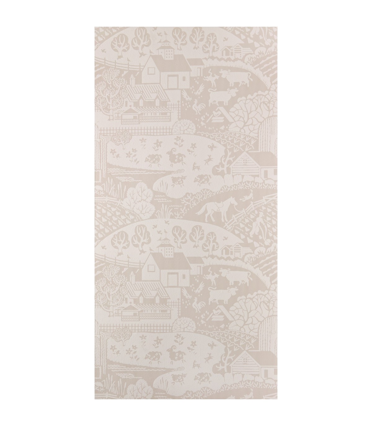 "Représentant une scène champêtre pleine de charme constituée de champs labourés, de clôtures et d’animaux de la ferme, Gable restitue parfaitement la candeur d’une époque où la vie était plus simple. Ce dessin aux motifs entremêlés est parsemé de détails ludiques qui stimulent l’imaginaire.