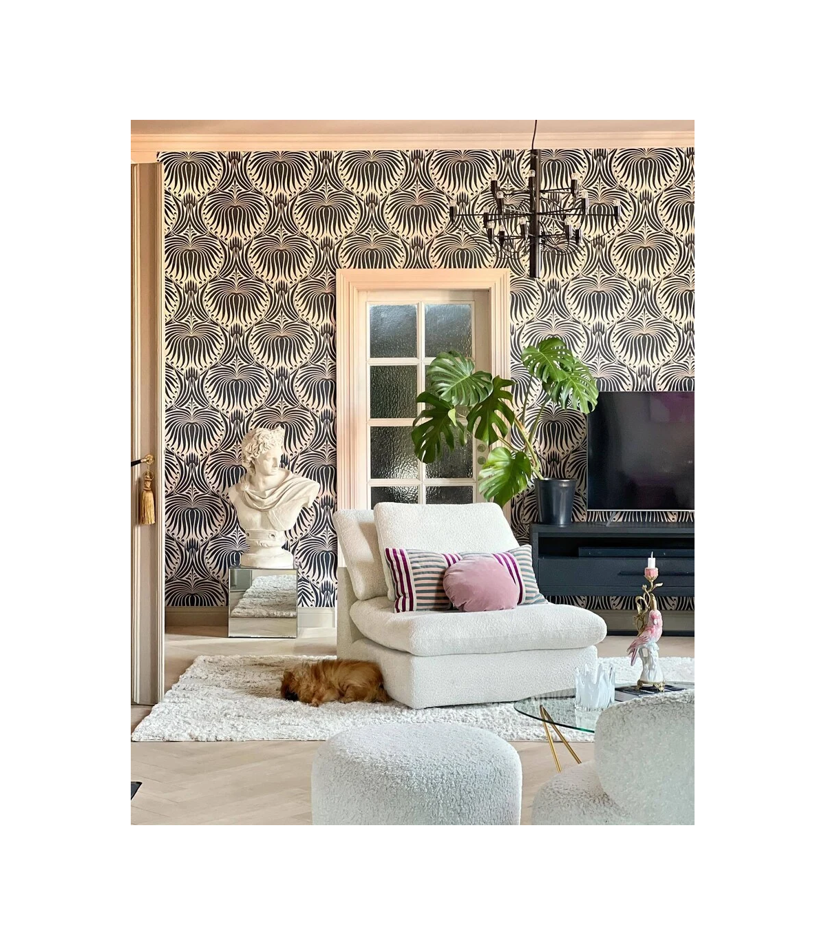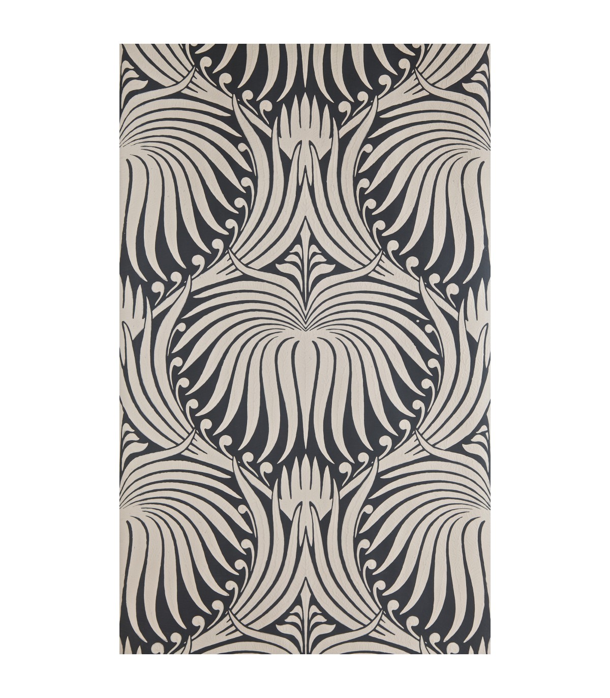 "Inspiré de la période Belle Époque, le motif Lotus apporte une touche vintage élégante typique du XIXème siècle dans les maisons traditionnelles comme contemporaines. Les fleurs qui s’épanouissent au mur sont imprimées directement à partir de peinture Farrow & Ball, ce qui donne cet effet texturé au papier et cette dynamique au motif.