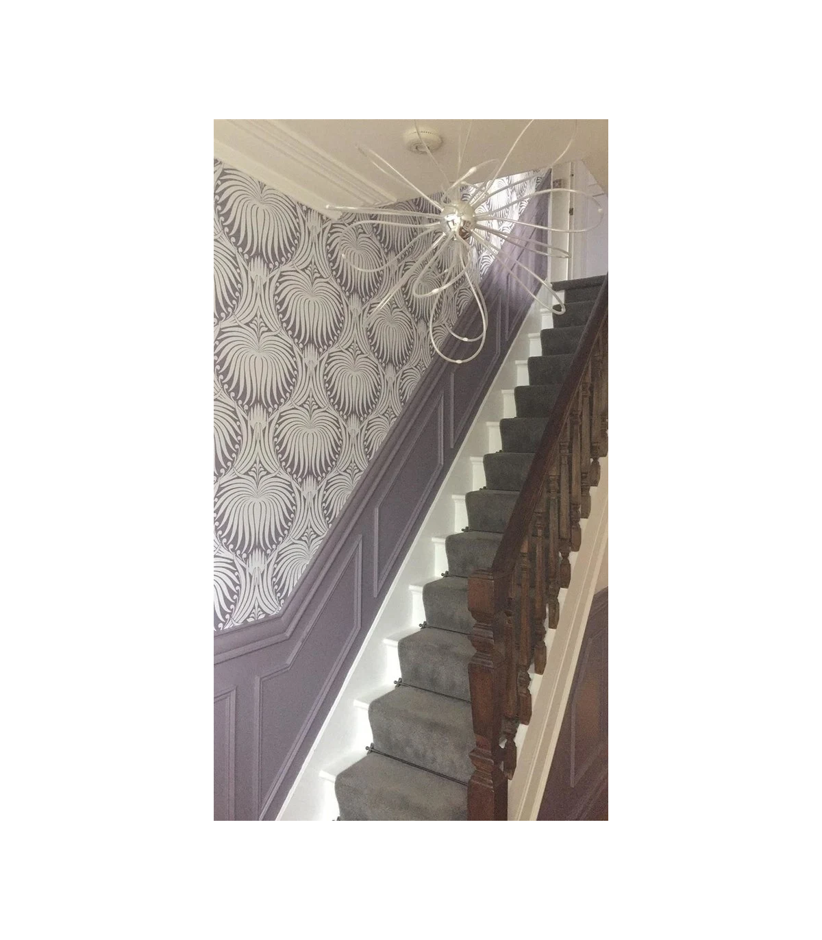 "Inspiré de la période Belle Époque, le motif Lotus apporte une touche vintage élégante typique du XIXème siècle dans les maisons traditionnelles comme contemporaines. Les fleurs qui s’épanouissent au mur sont imprimées directement à partir de peinture Farrow & Ball, ce qui donne cet effet texturé au papier et cette dynamique au motif.