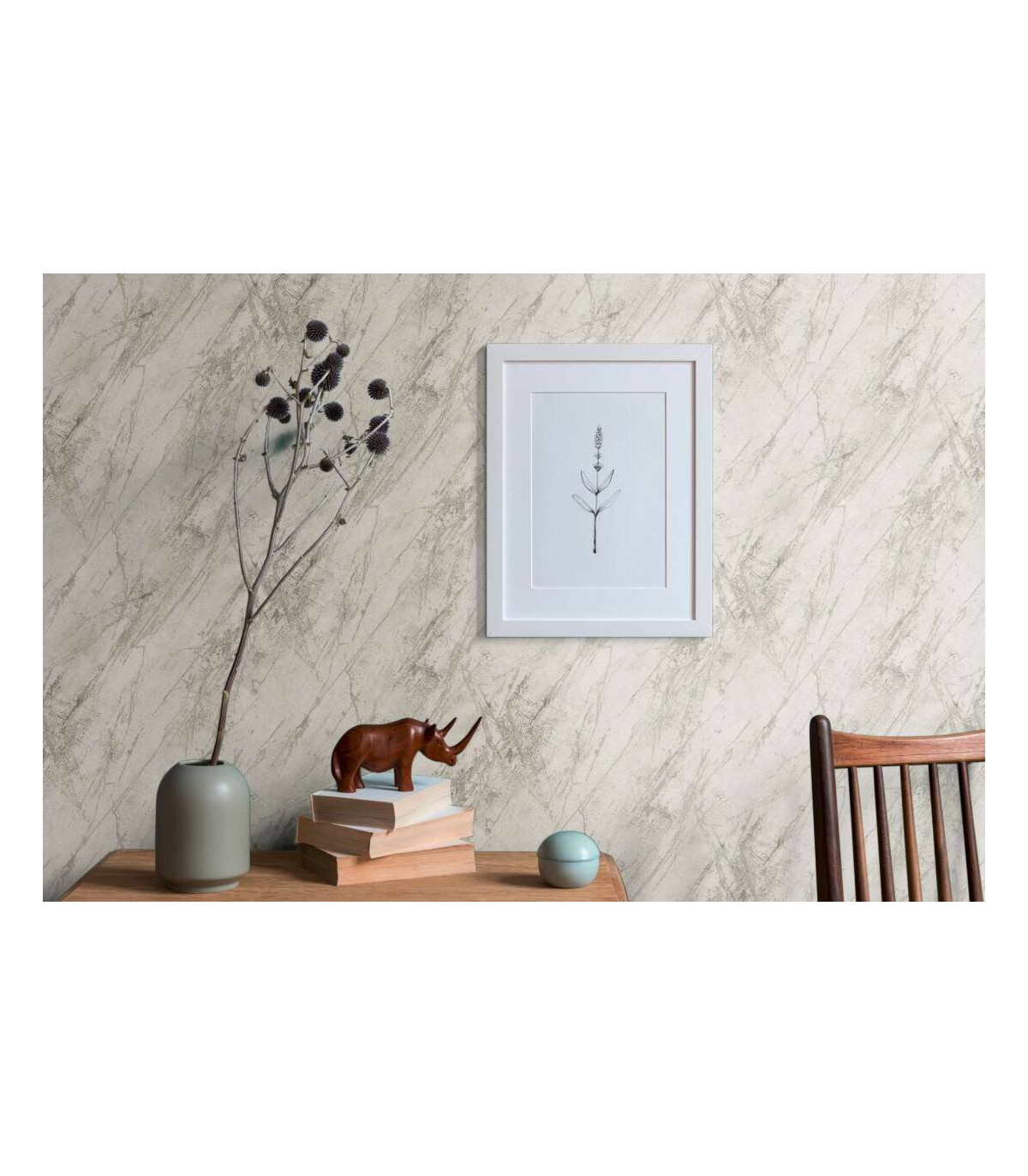 Rouleau 0,53x10,05 m, Raccord sauté de 64/32 cm. Couleur: argent, blanc, gris, métallique. Décor: déco / motif, moderne, pierre, structure. Pièce: bureau, chambre, couloir, cuisine, salon. Qualité: Bonne résistance, Brossable, Strippable.