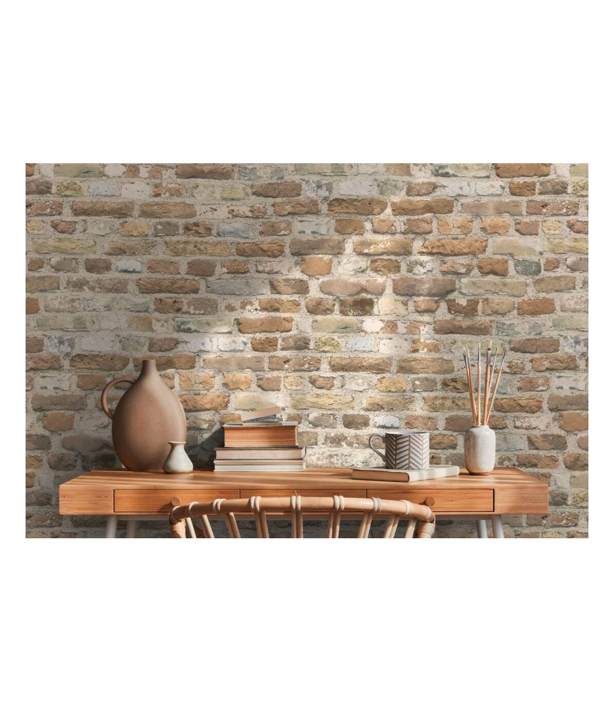 Rouleau 0,53x10,05 m, Raccord sauté de 64/32 cm. Couleur: beige, crème, gris, marron, taupe. Décor: déco / motif, pierre, structure. Pièce: bureau, chambre, couloir, cuisine, salon. Qualité: Bonne résistance, Brossable, Strippable.