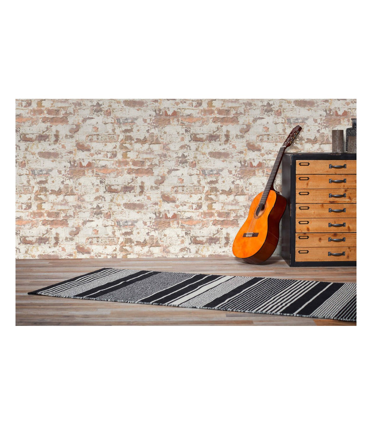 Rouleau 0,53x10,05 m, Raccord sauté de 64/32 cm. Couleur: blanc, gris, noir, orange, rouge. Décor: 3D, déco / motif, maison, moderne, murale, pierre, rétro. Pièce: bureau, chambre, chambre enfant, couloir, cuisine, salon. Qualité: Bonne résistance, Brossable, Strippable.