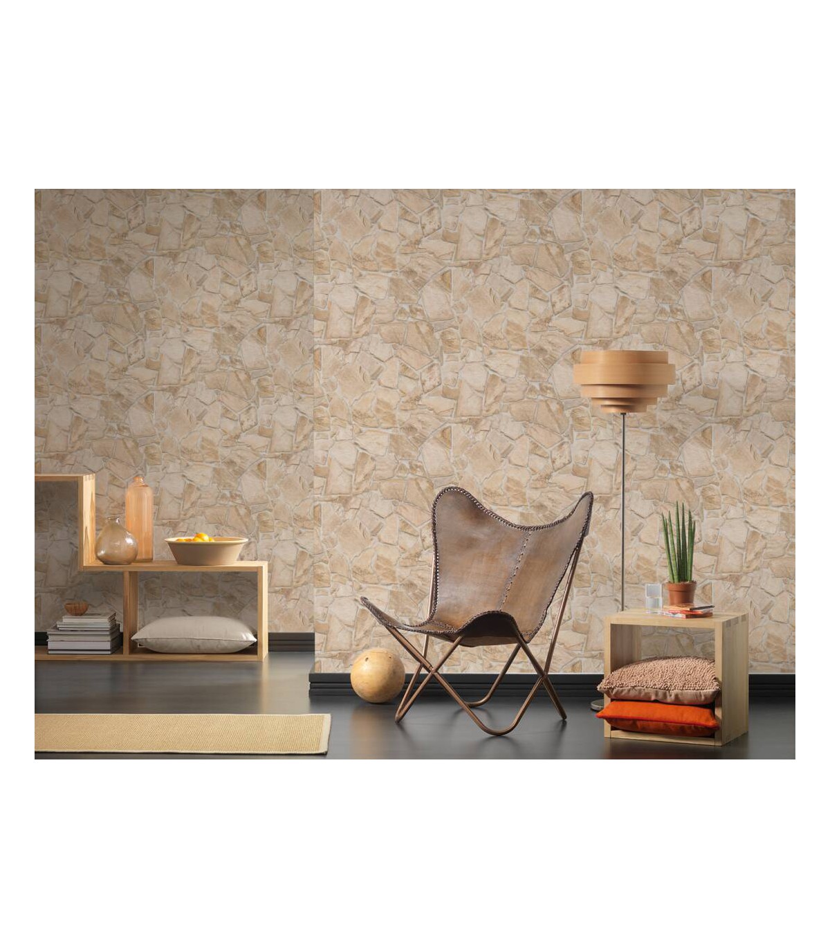 Rouleau 0,53x10,05 m, Raccord sauté de 64/32 cm. Couleur: beige, crème. Décor: déco / motif, pierre, structure. Pièce: chambre, couloir, cuisine, salle de bains, salon. Qualité: Bonne résistance, Brossable, Strippable.