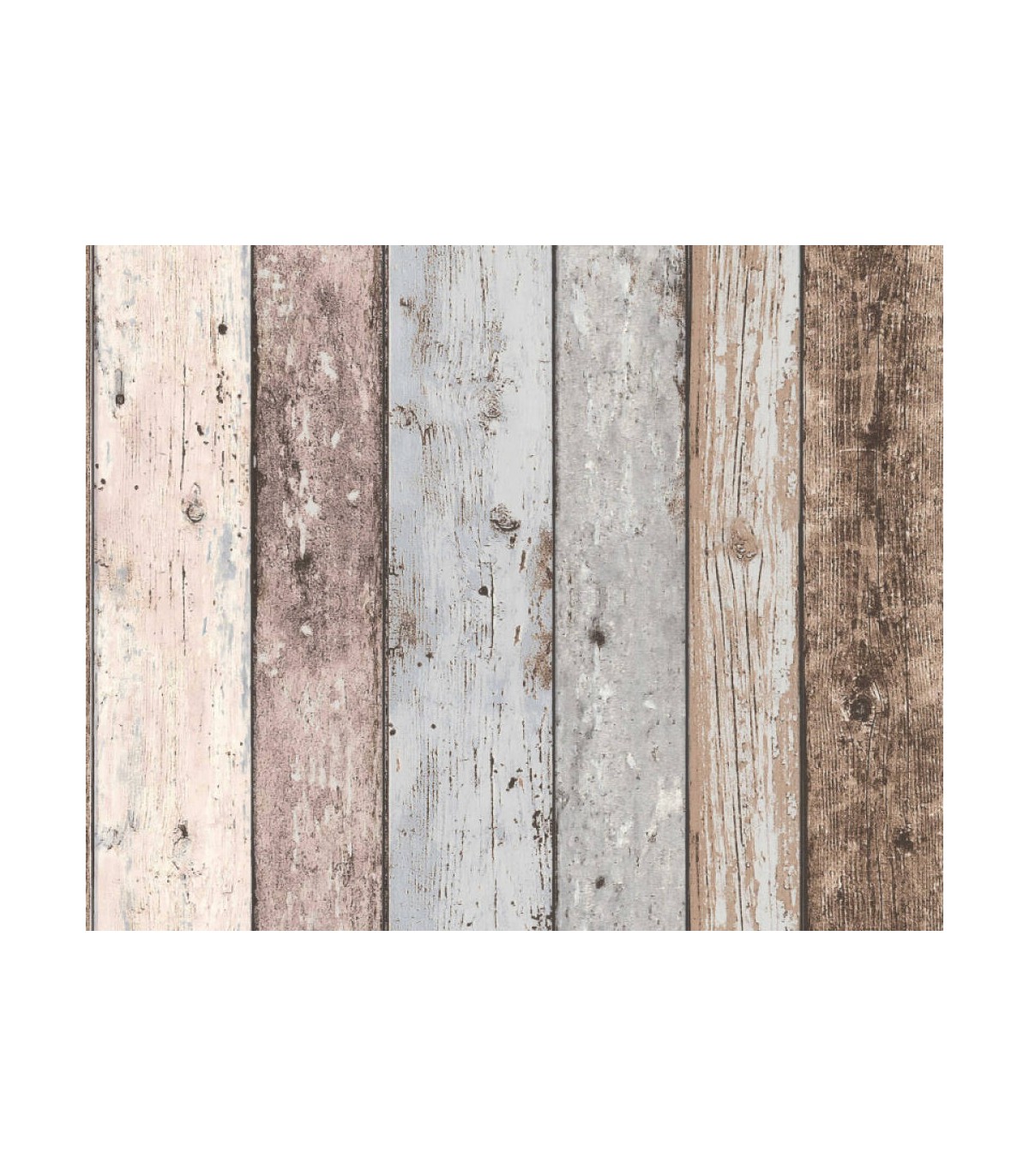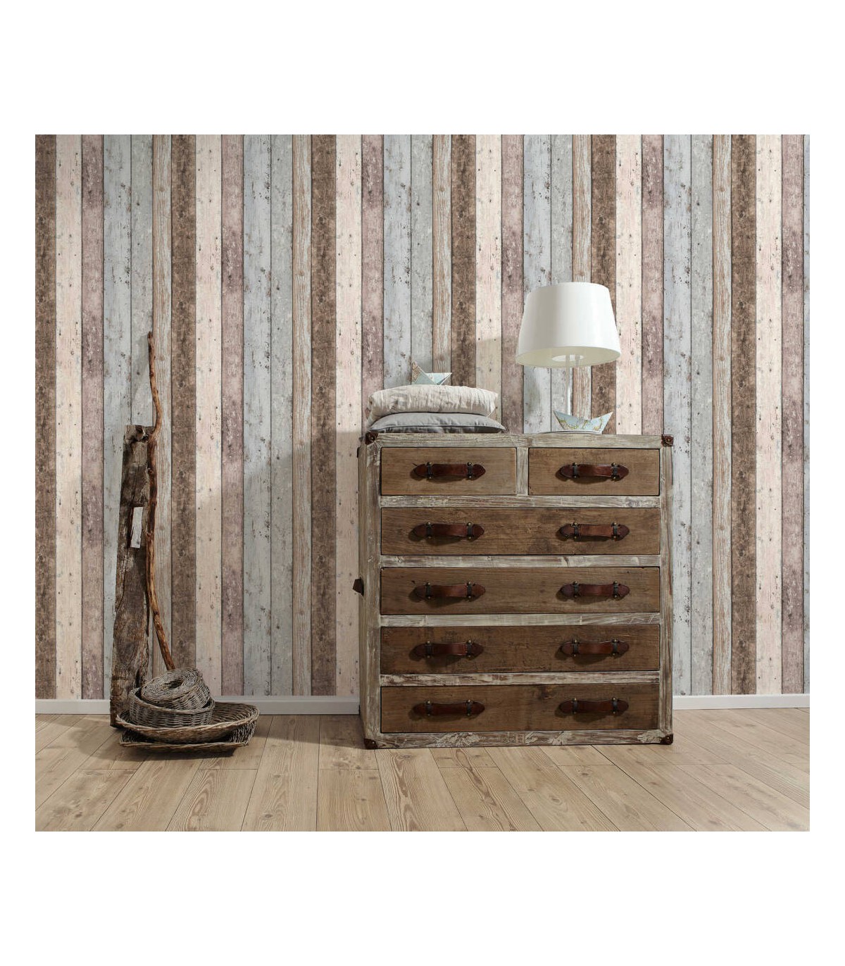 Rouleau 0,53x10,05 m, Raccord libre. Couleur: beige, bleu, marron. Décor: bois, maison, rayures. Pièce: chambre, couloir, cuisine, salon. Qualité: Bonne résistance, Brossable, Strippable.