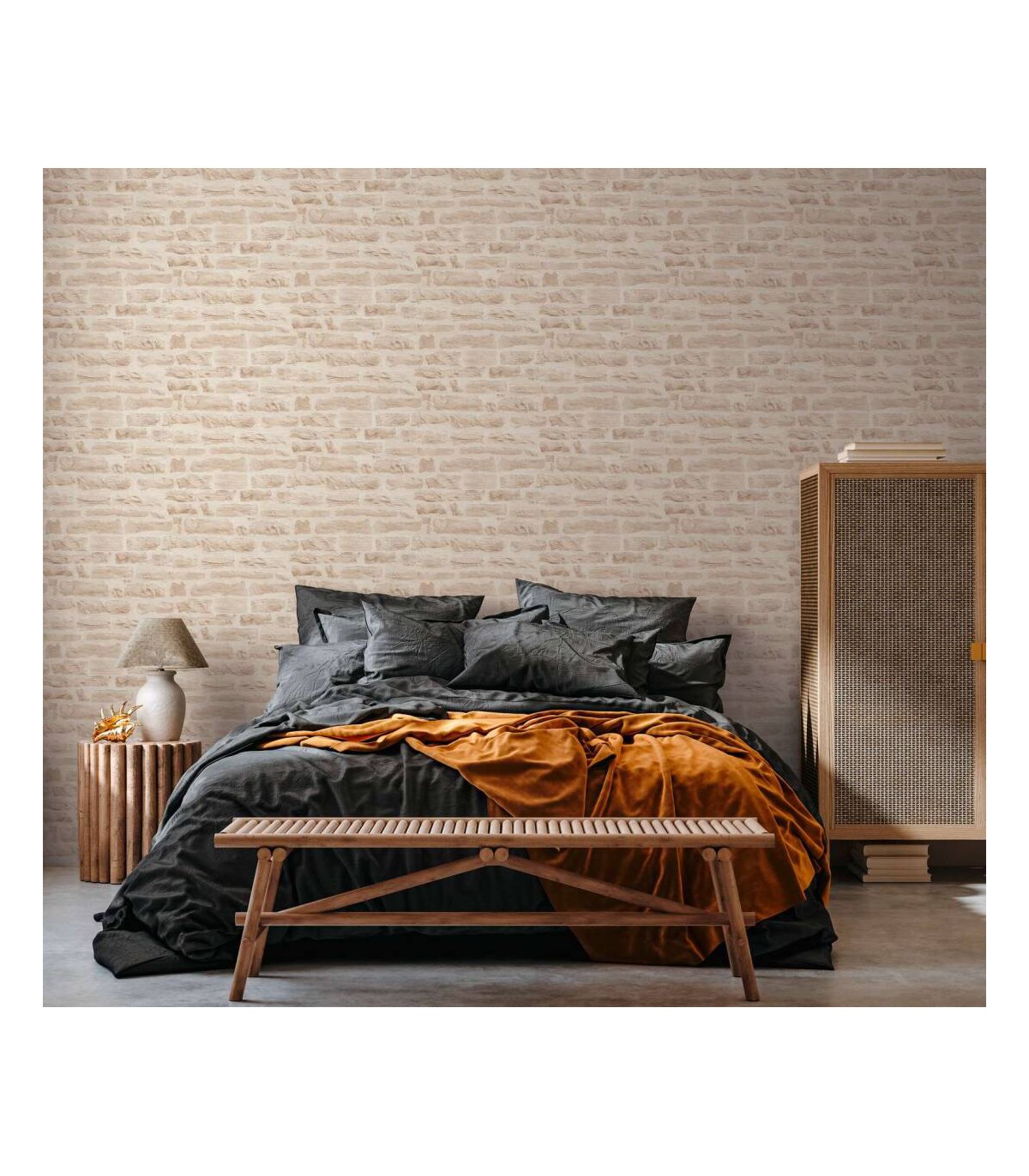Rouleau 0,53x10,05 m, Raccord sauté de 53/26 cm. Couleur: beige, crème. Décor: déco / motif, pierre, structure. Pièce: bureau, chambre, couloir, cuisine, salon. Qualité: Bonne résistance, Brossable, Strippable.