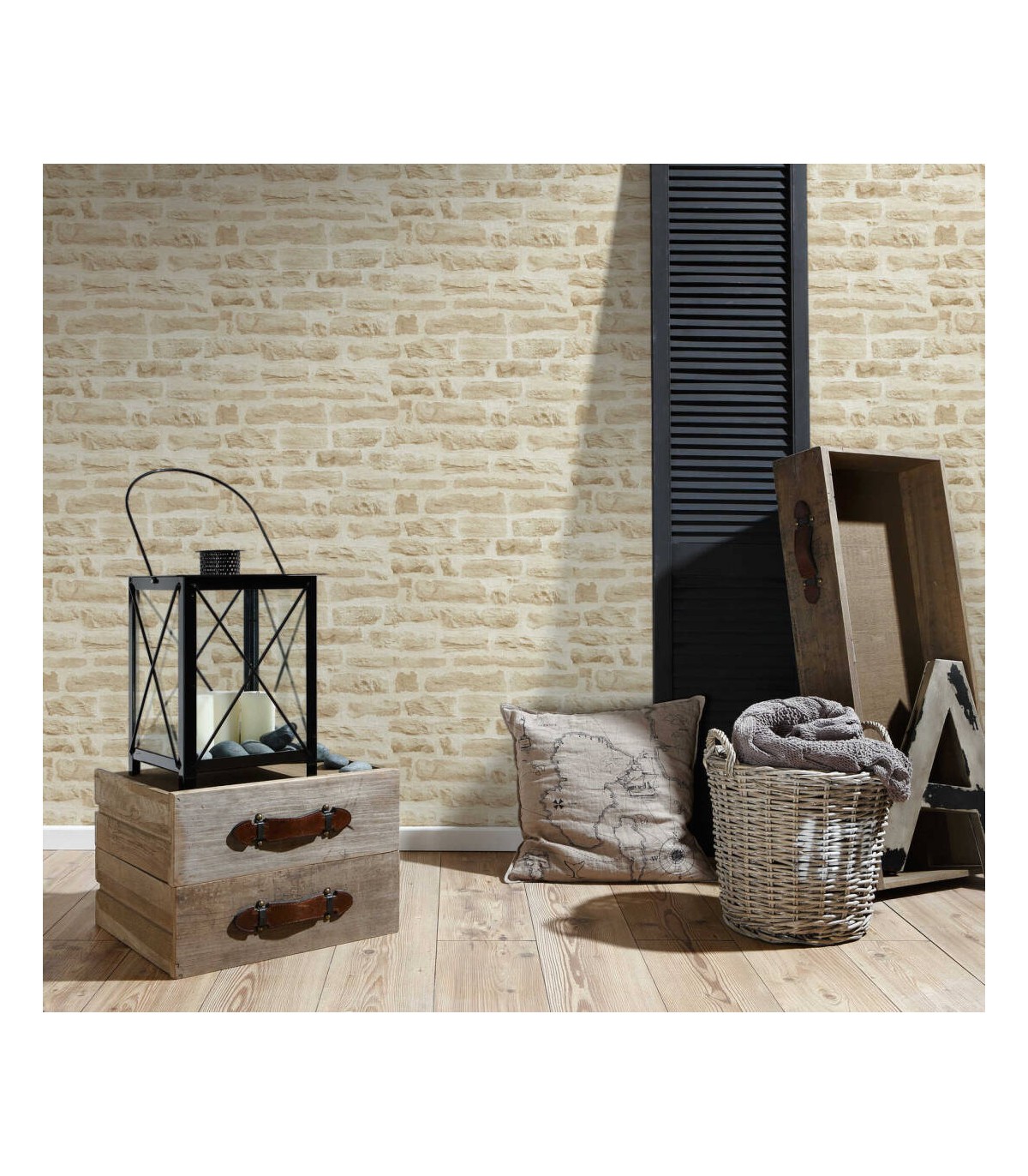 Rouleau 0,53x10,05 m, Raccord sauté de 53/26 cm. Couleur: beige, crème. Décor: déco / motif, pierre, structure. Pièce: bureau, chambre, couloir, cuisine, salon. Qualité: Bonne résistance, Brossable, Strippable.