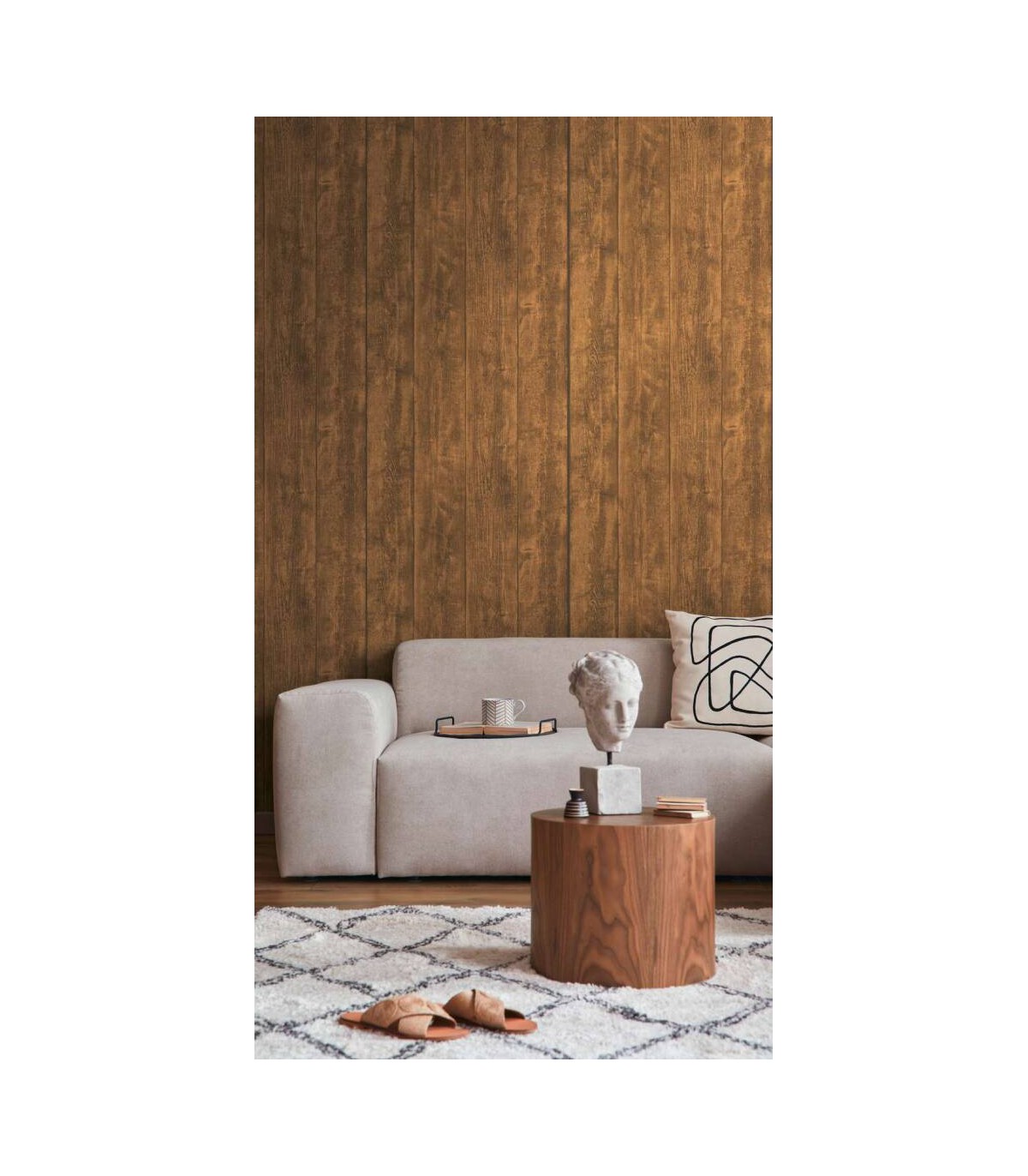 Rouleau 0,53x10,05 m, Raccord libre. Couleur: marron. Décor: bois, déco / motif, maison, moderne. Pièce: chambre, couloir, cuisine, salle de bains, salon. Qualité: Bonne résistance, Brossable, Strippable.
