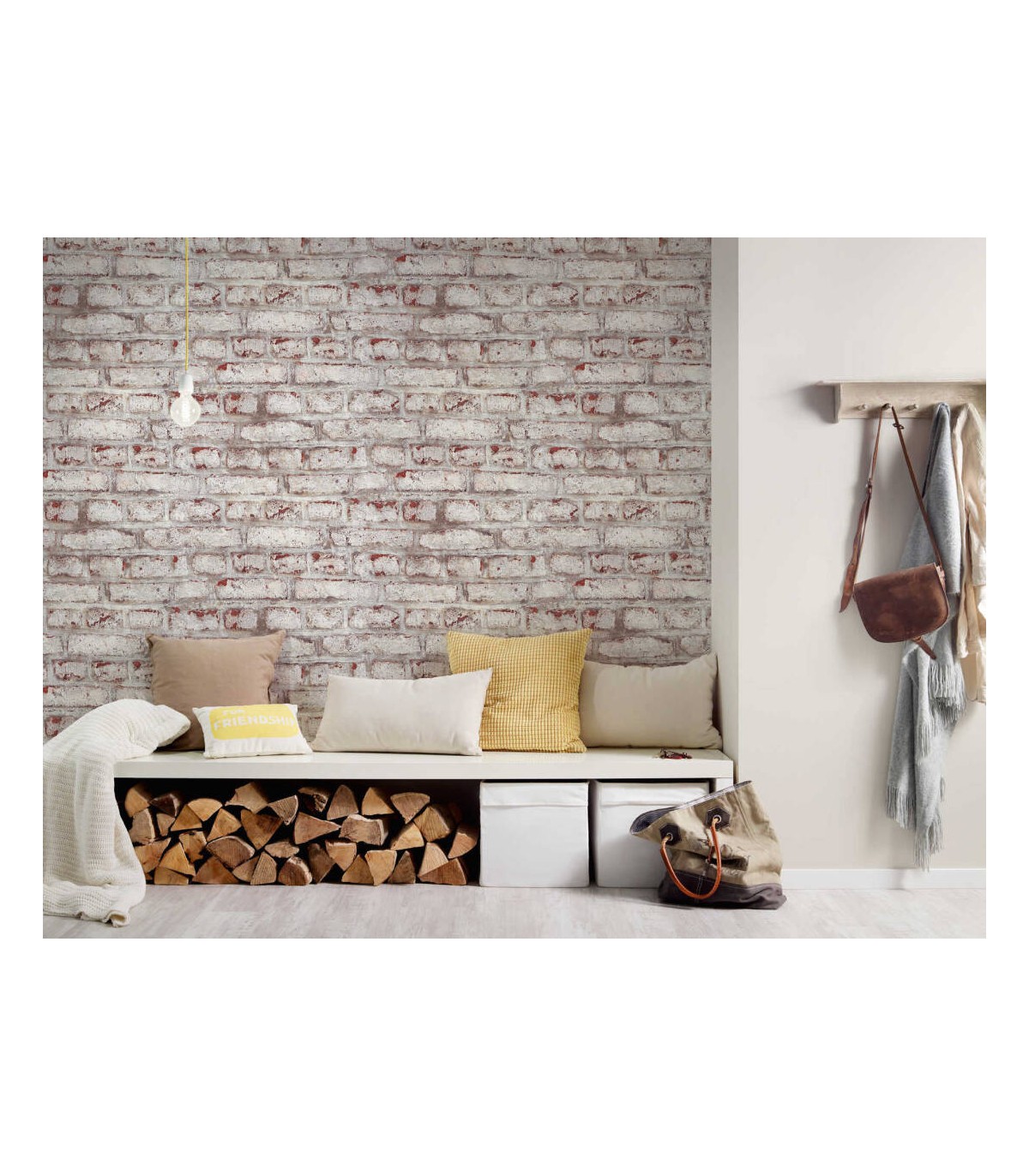 Rouleau 0,53x10,05 m, Raccord sauté de 64/32 cm. Couleur: beige, blanc, crème, gris, marron, taupe. Décor: déco / motif, floral, maison, pierre. Pièce: bureau, chambre, couloir, cuisine, salle de bains, salon. Qualité: Bonne résistance, Brossable, Strippable.