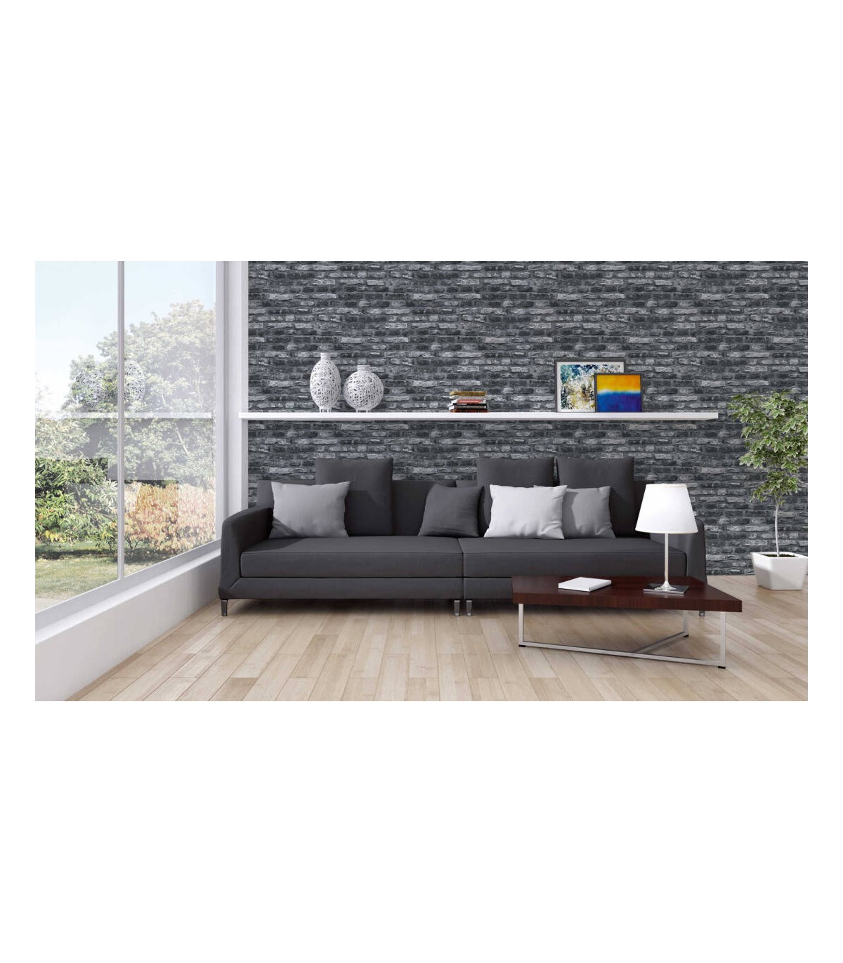 Rouleau 0,53x10,05 m, Raccord sauté de 64/32 cm. Couleur: gris, noir. Décor: déco / motif, floral, pierre. Pièce: bureau, chambre, couloir, cuisine, salle de bains, salon. Qualité: Bonne résistance, Brossable, Strippable.