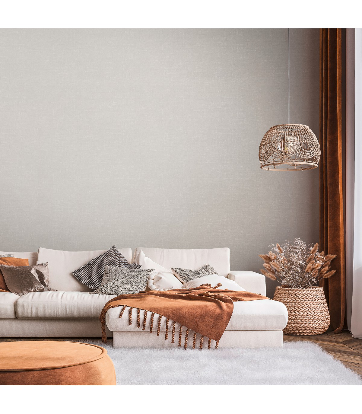 Rouleau 0,53x10,05 m, Raccord libre. Couleur: beige, gris, taupe. Décor: 3D, déco / motif, maison, moderne. Pièce: chambre, couloir, cuisine, salon, surface à tapisser. Qualité: Bonne résistance, Brossable, Strippable.