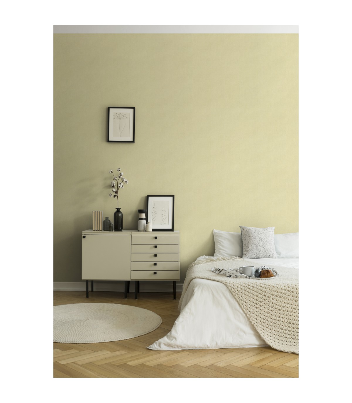 Rouleau 0,53x10,05 m, Raccord libre. Couleur: jaune, vert. Décor: unis. Pièce: chambre, chambre enfant, couloir, cuisine, salle de bains, salon, surface à tapisser. Qualité: Bonne résistance, Brossable, Strippable.