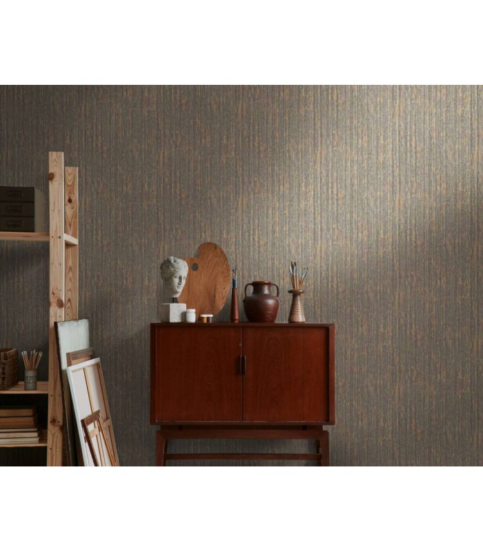 Rouleau 0,53x10,05 m, Raccord libre. Couleur: marron, métallique. Décor: unis. Pièce: bureau, chambre, couloir, cuisine, salon. Qualité: Bonne résistance, Brossable, Strippable.